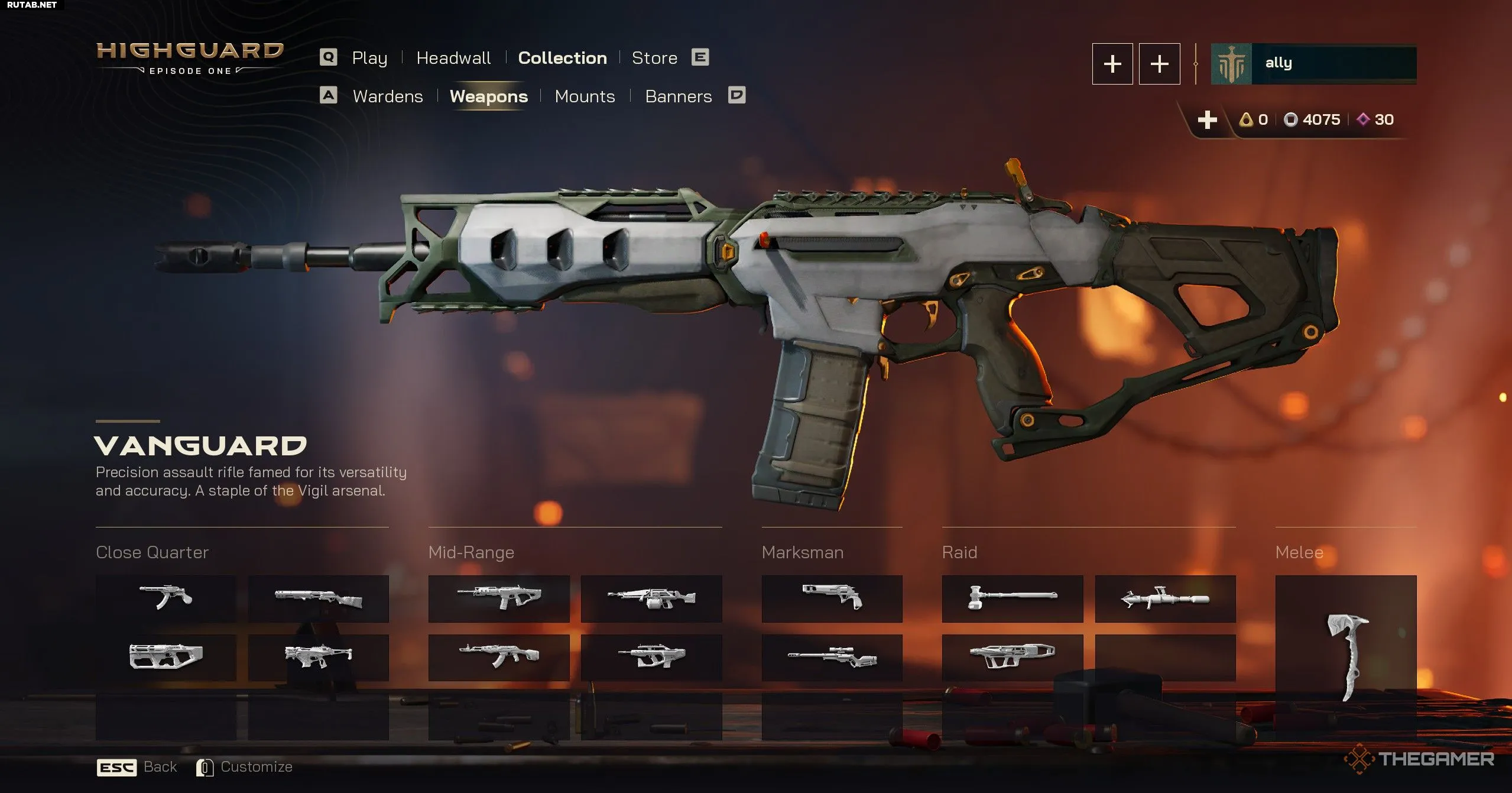 | Vanguard (Штурмовая винтовка) | Исключительно сбалансированное оружие с высокой точностью и уроном. Надёжно проявляет себя практически в любом бою, что делает его самым безопасным и универсальным основным оружием в Хайгарде. |