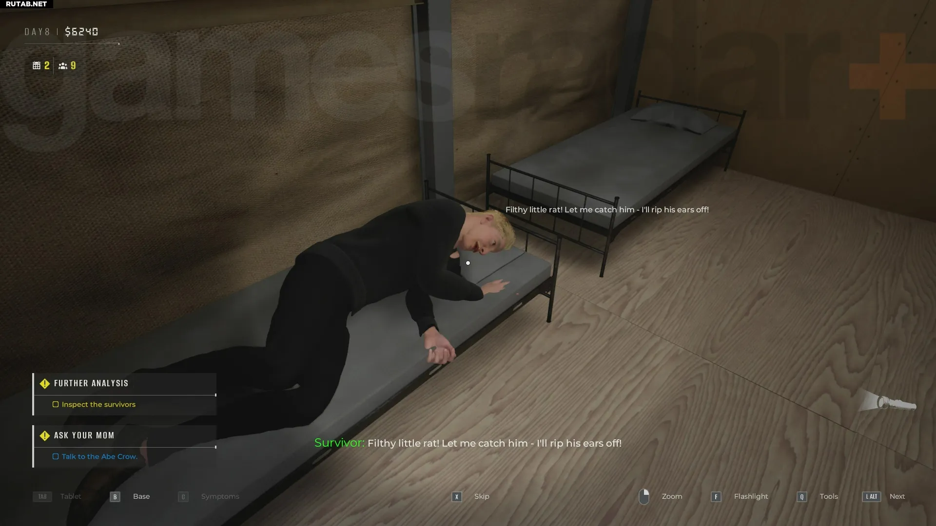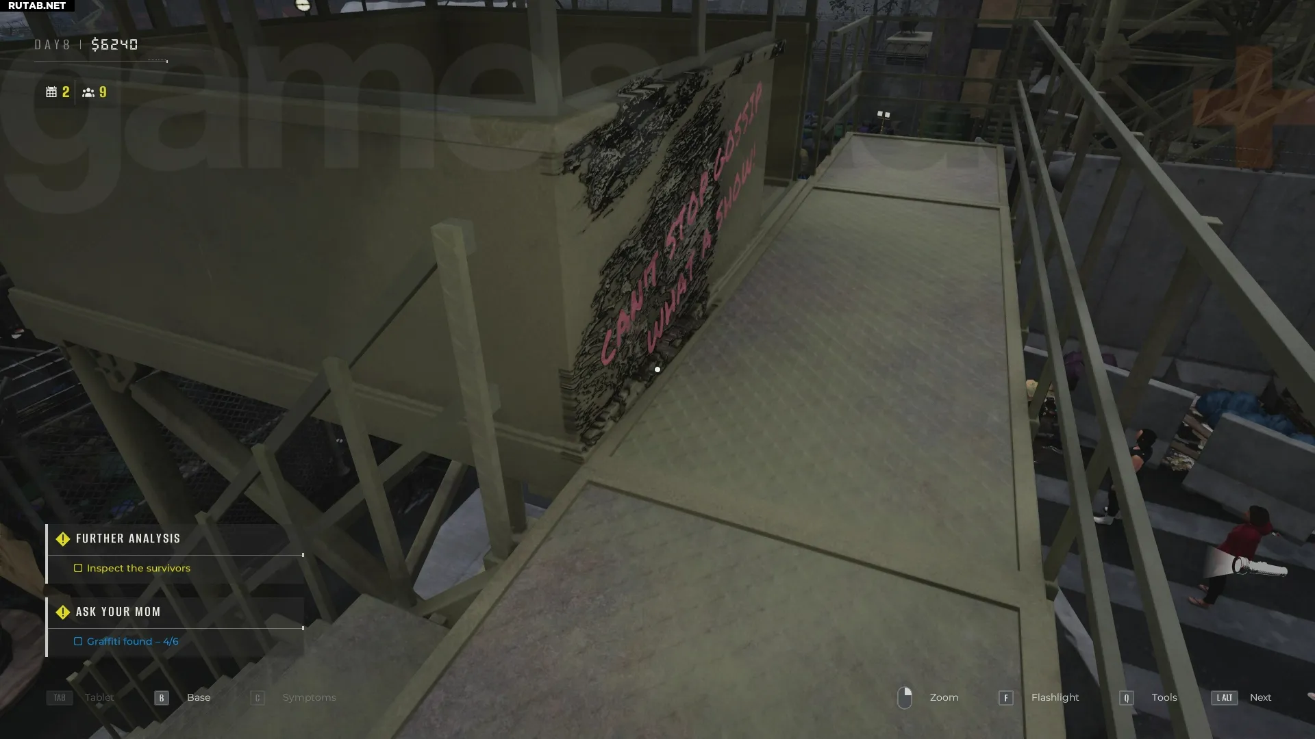 Чтобы завершить задание «Спроси у мамы» в Карантинной зоне, вам нужно решить: принять деньги от вандала или покинуть жилой блок и доложить о нём. Хотя сдача нарушителя может быть морально правильным поступком, вы вряд ли захотите потерять здорового выжившего, который учитывается при следующей эвакуации, если его выгонят. Поэтому я советую зайти в палатку и взять деньги — вы получите 1000 долларов, которые пополнят ваш баланс и помогут финансировать будущие припасы или улучшения.