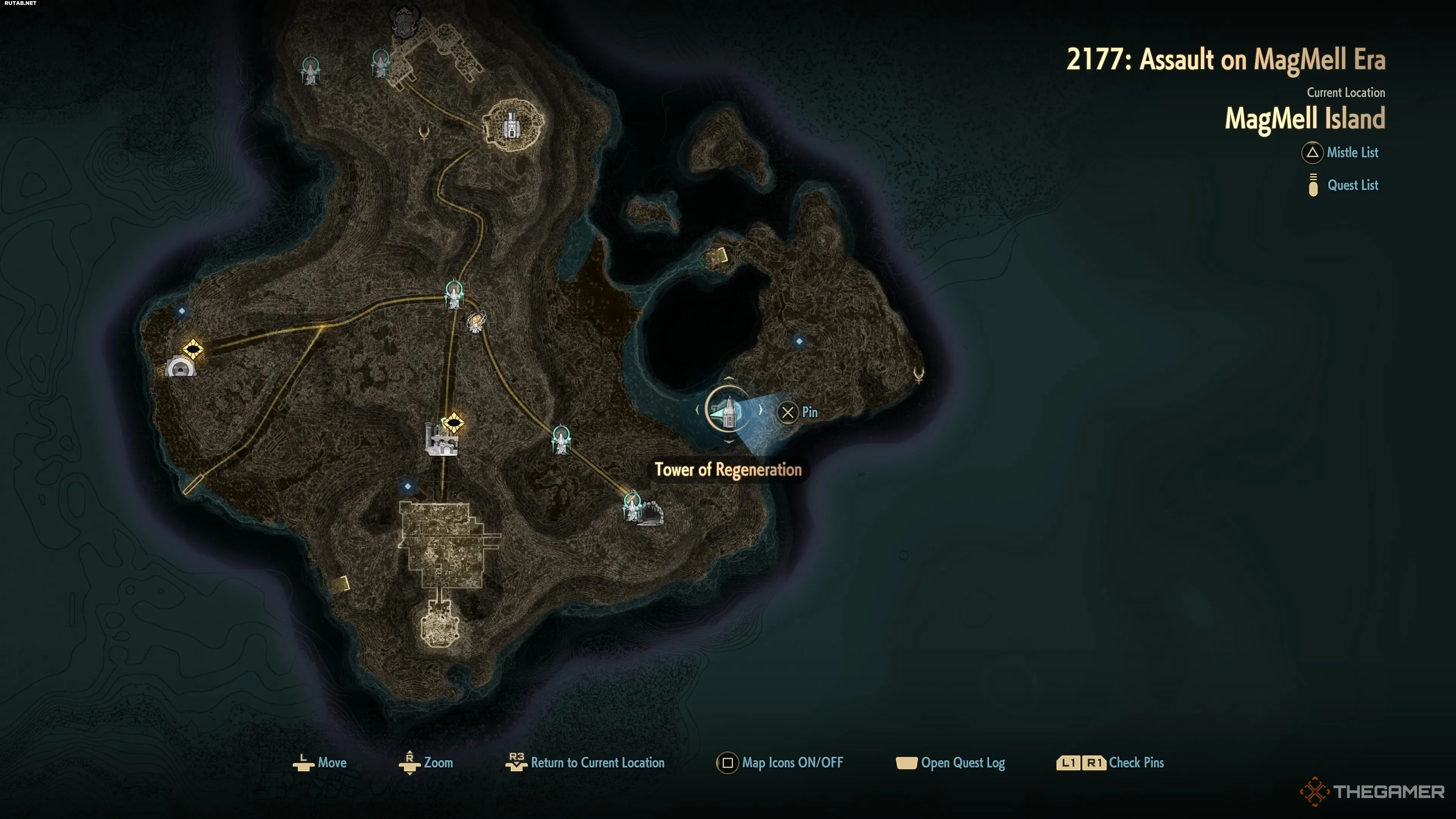 На МагМелле есть всего одна Башня Регенерации. Она находится в восточной части острова, немного южнее.