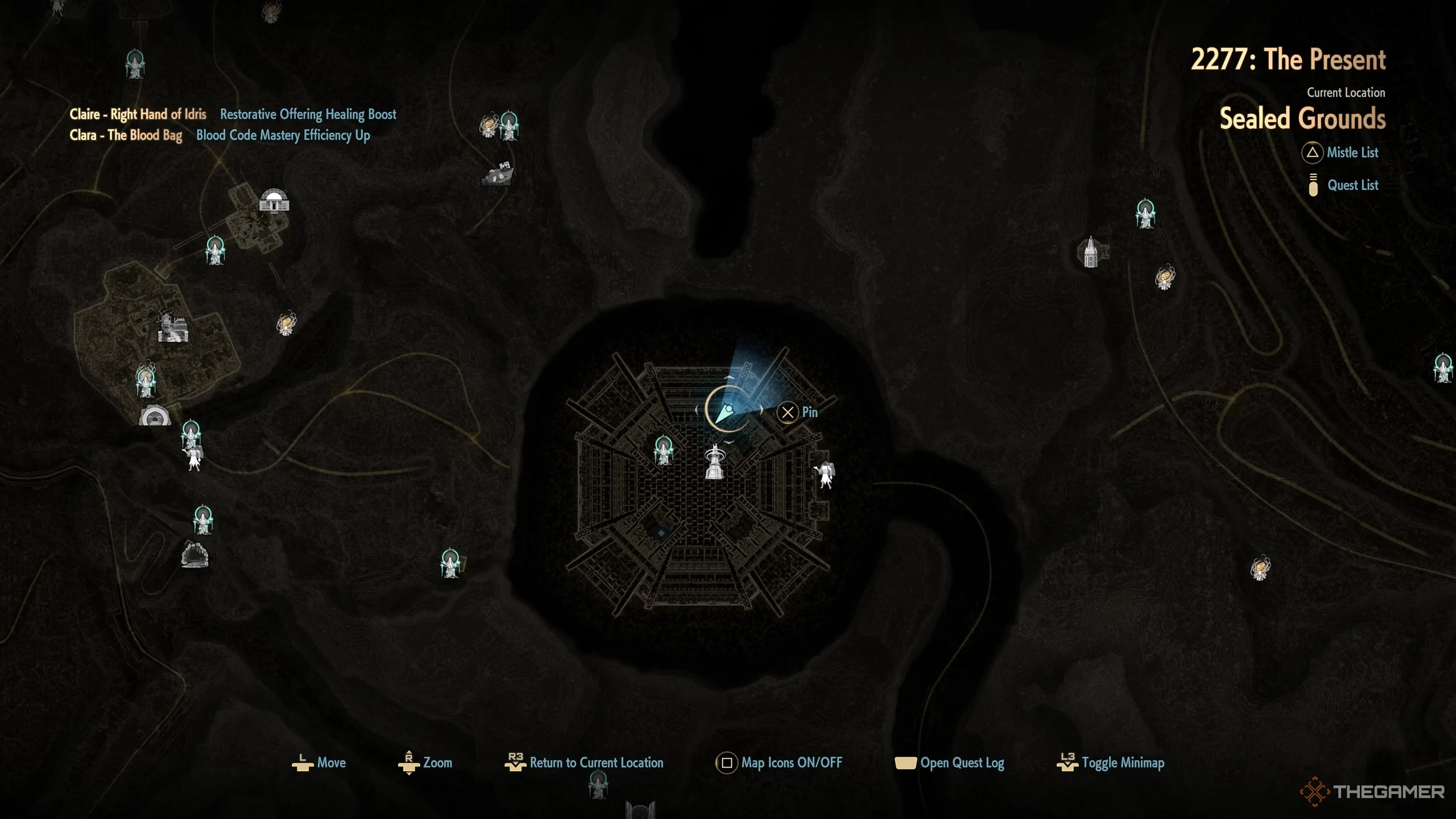 После перемещения в Закрытые Земли в прошлом, поднимитесь на верхний этаж. Активировав рычаг в конце пути, вы откроете двери, ведущие к Башне Регенерации из центрального зала. |