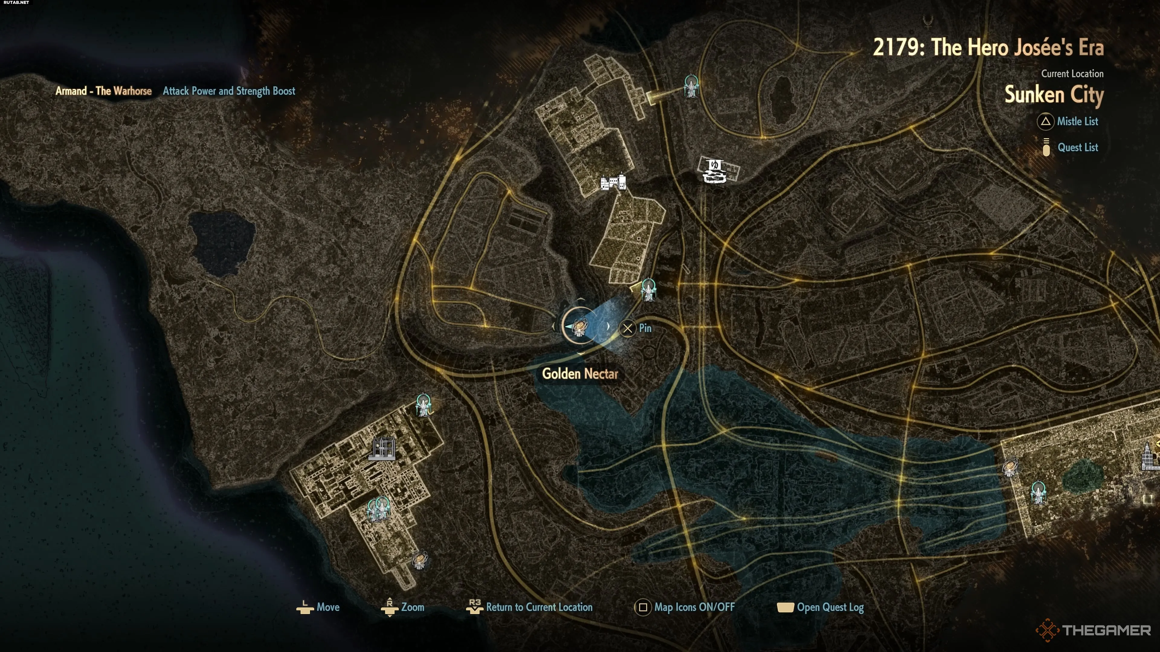 Этот Золотой Нектар расположен в северо-западном углу области «Разрушенный город».