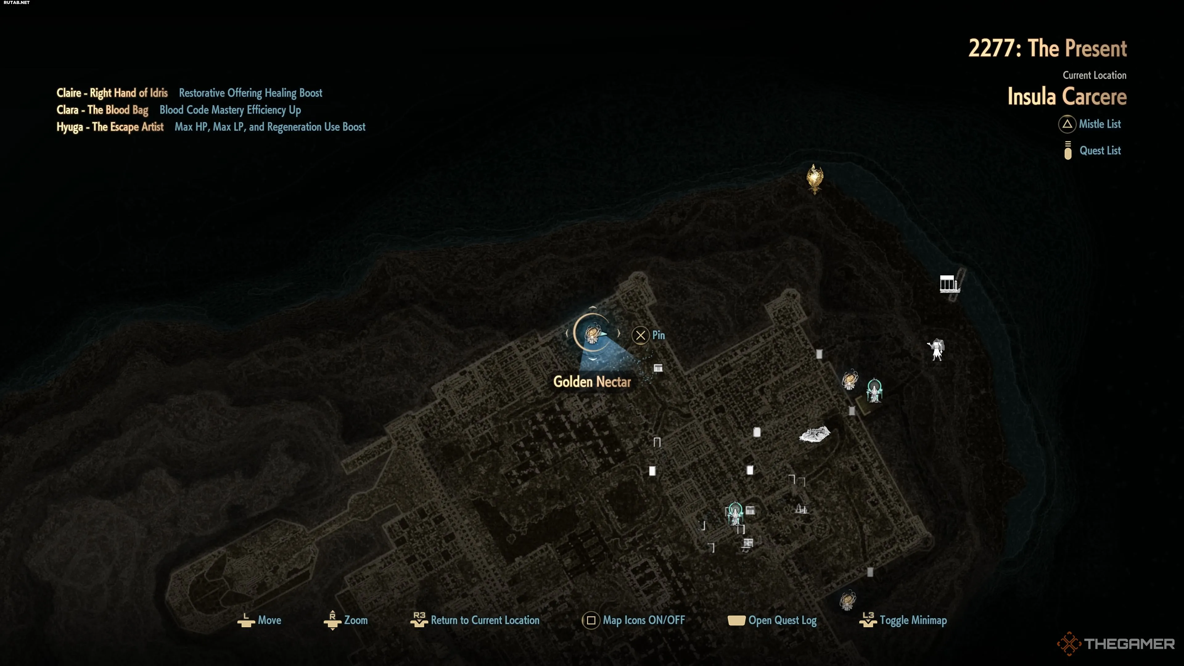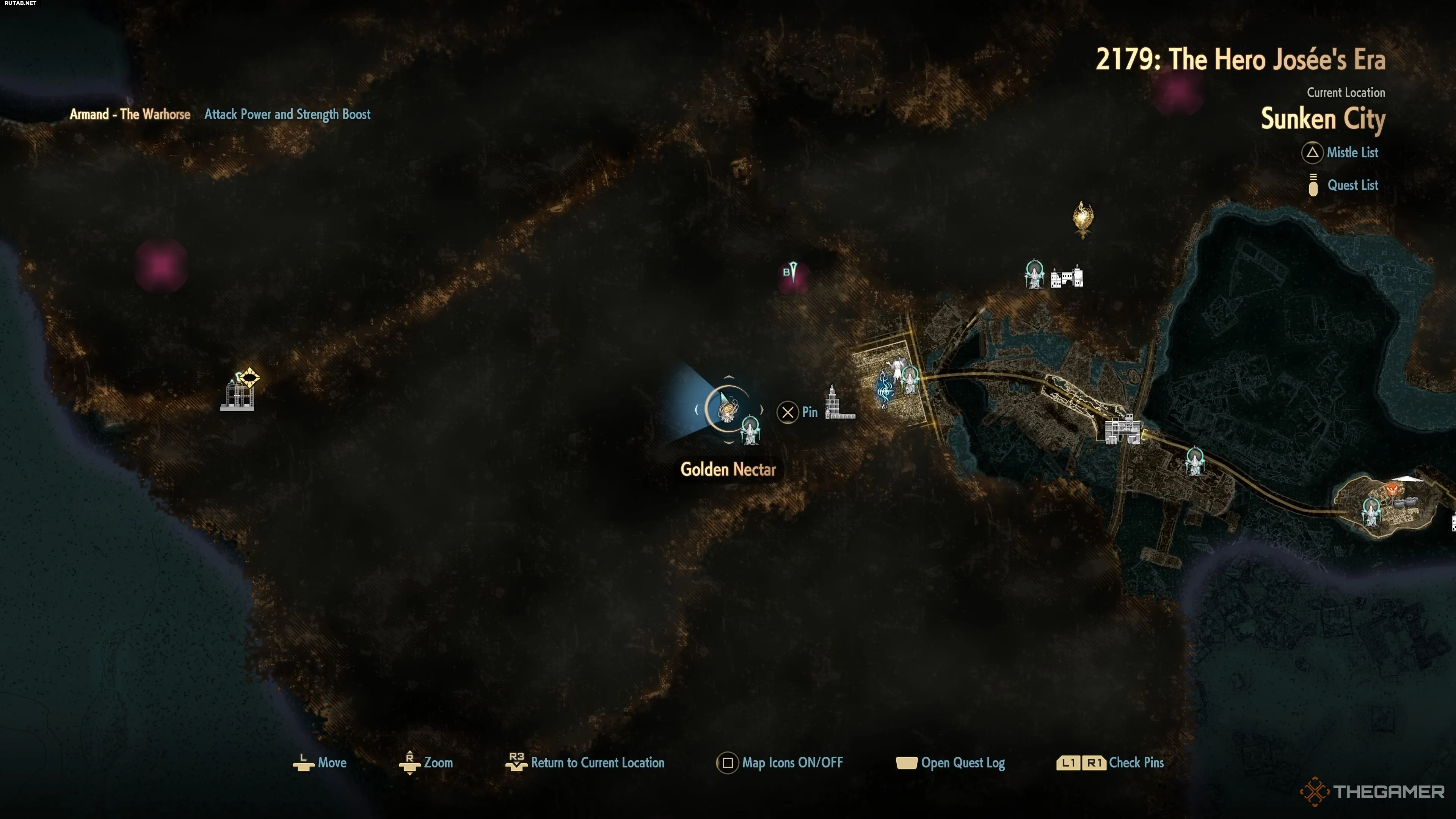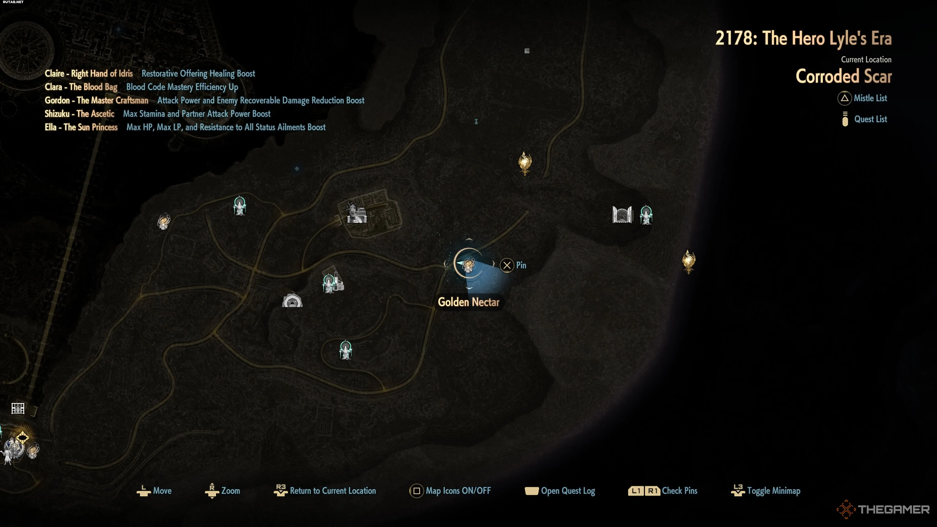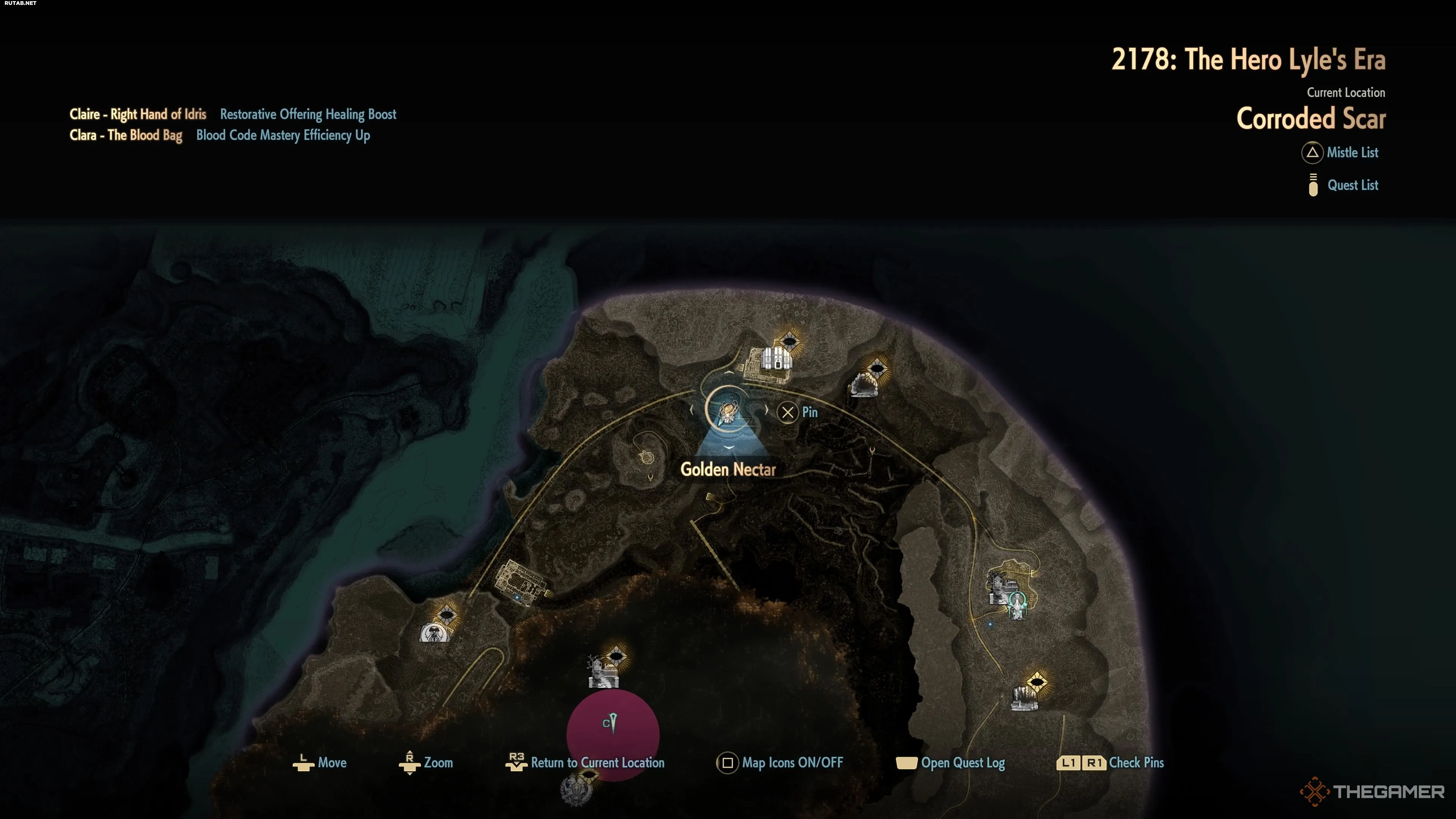В отличие от Золотых Кровавых Бусин, Золотые Нектары отмечены на карте сразу после отключения глушителя карты в определённой области. Они обозначены маленькими голубыми бликами на карте, что даёт вам примерное представление об их местоположении.