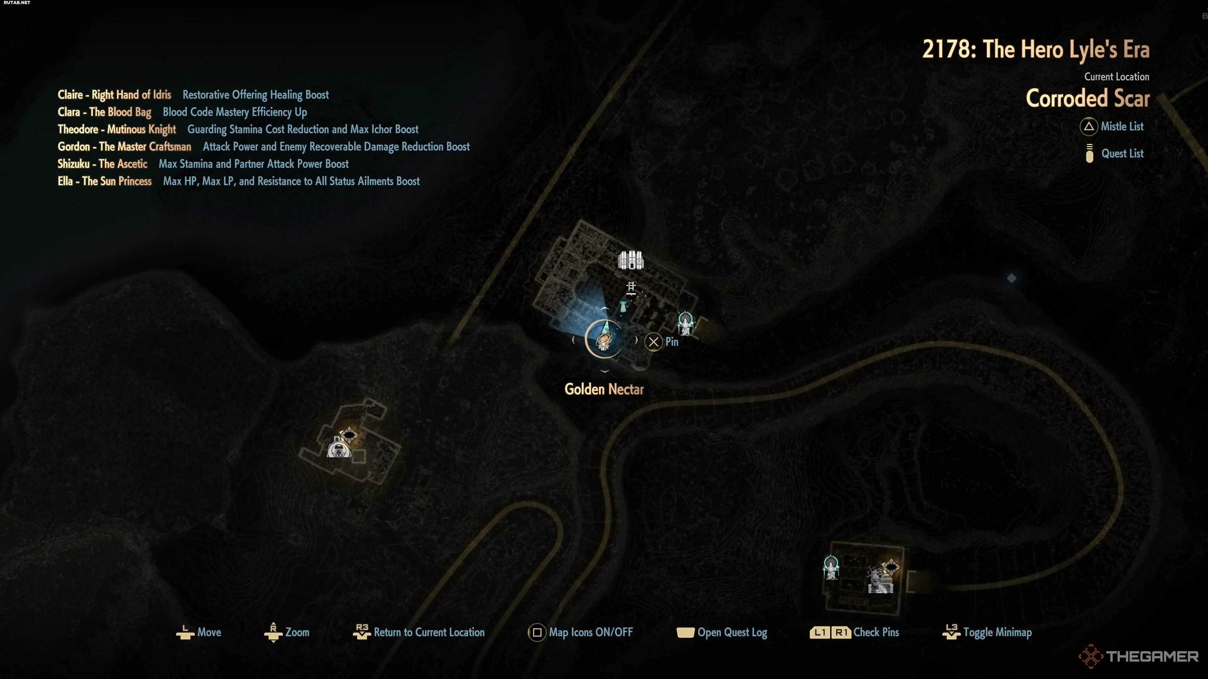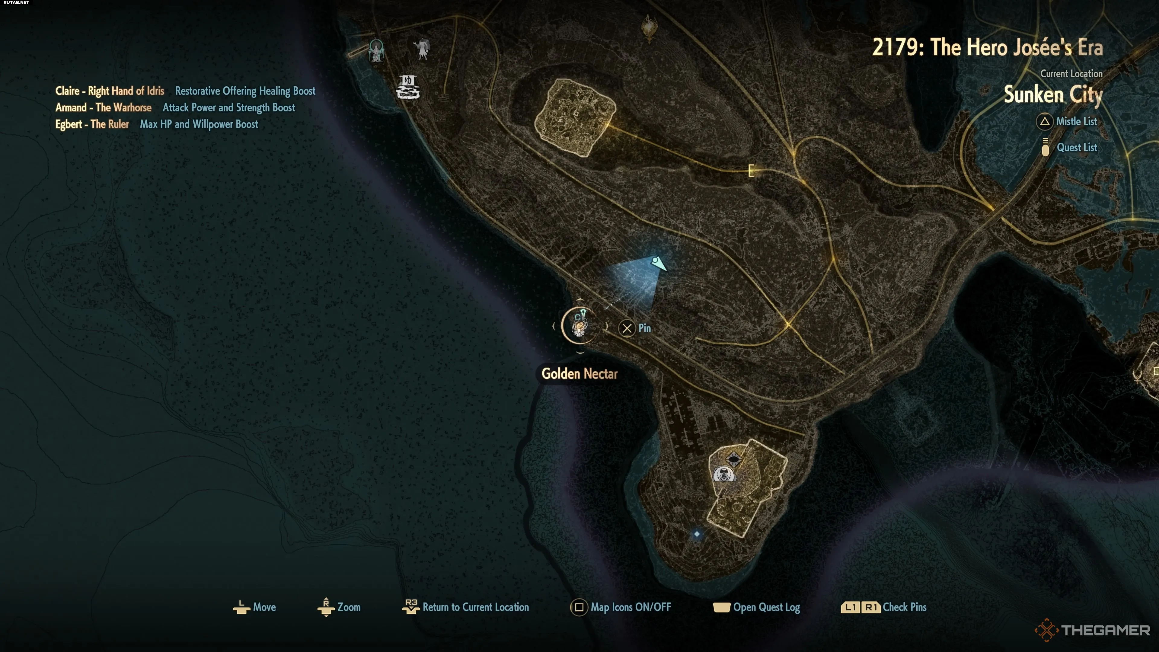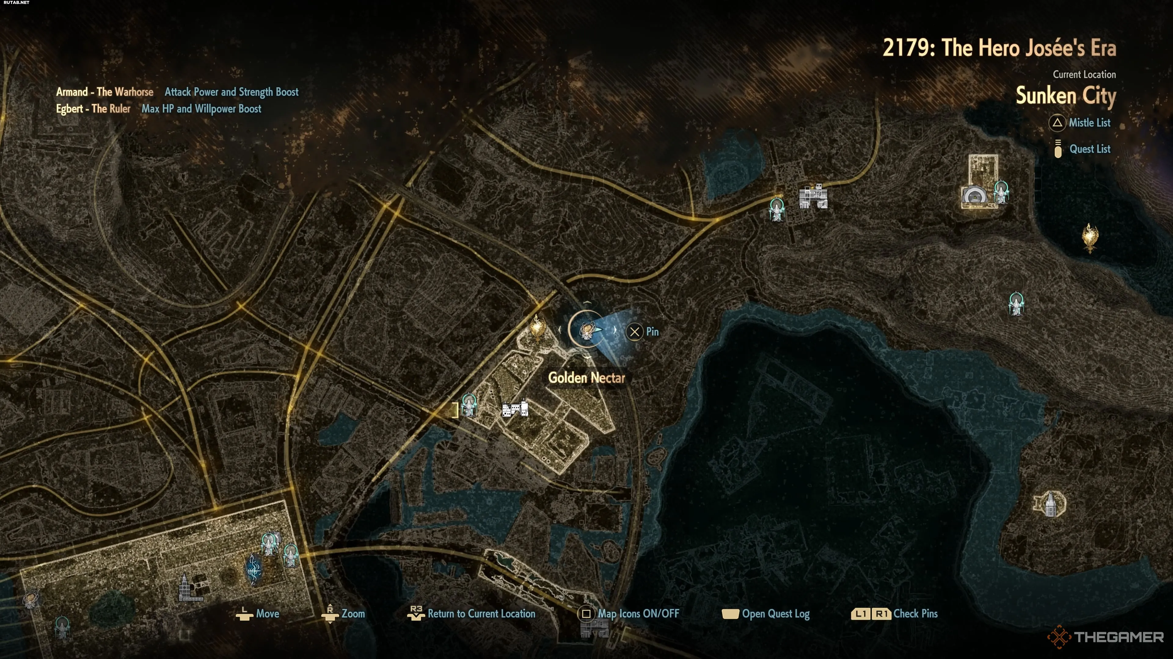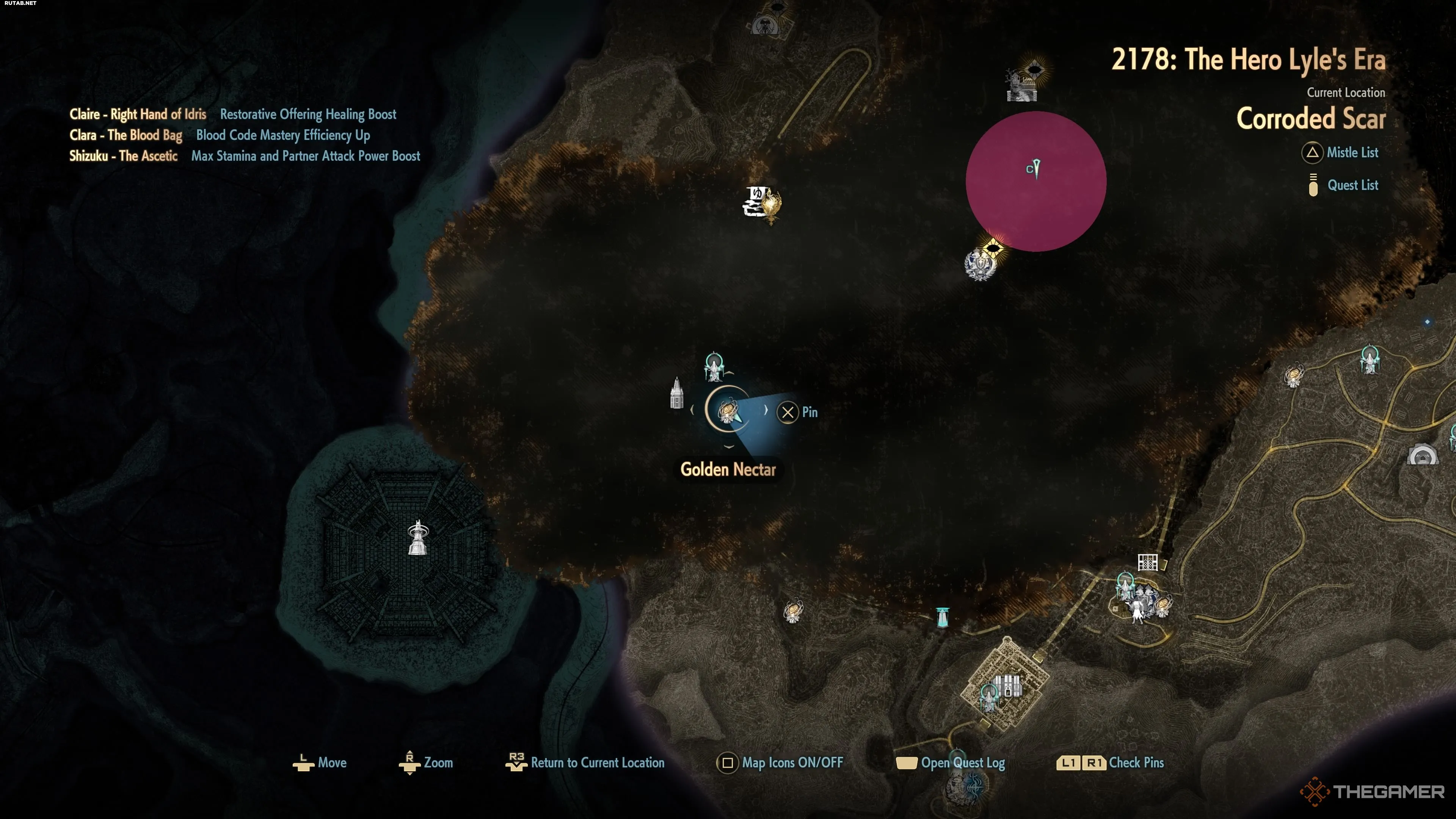 В отличие от Золотых Кровавых Бусин, Золотые Нектары отмечены на карте сразу после отключения глушителя карты в определённой области. Они обозначены маленькими голубыми бликами на карте, что даёт вам примерное представление об их местоположении.