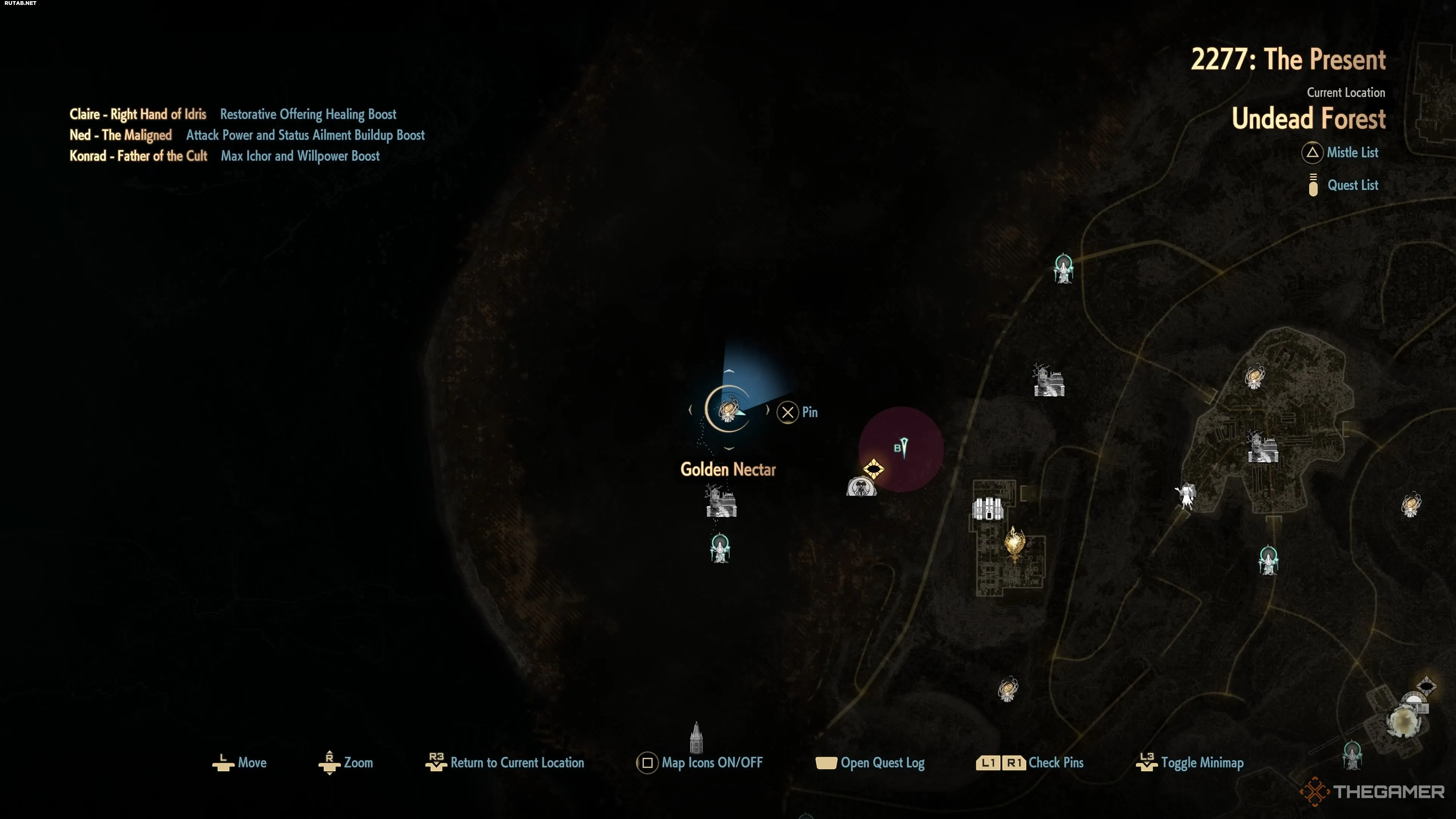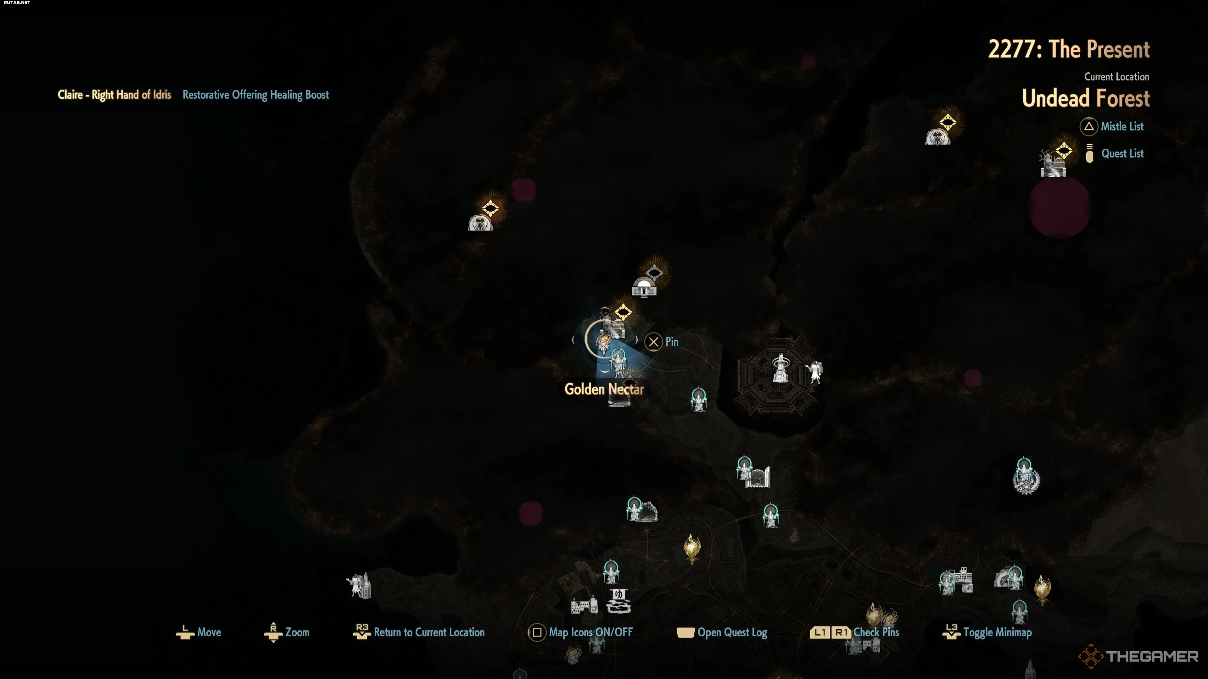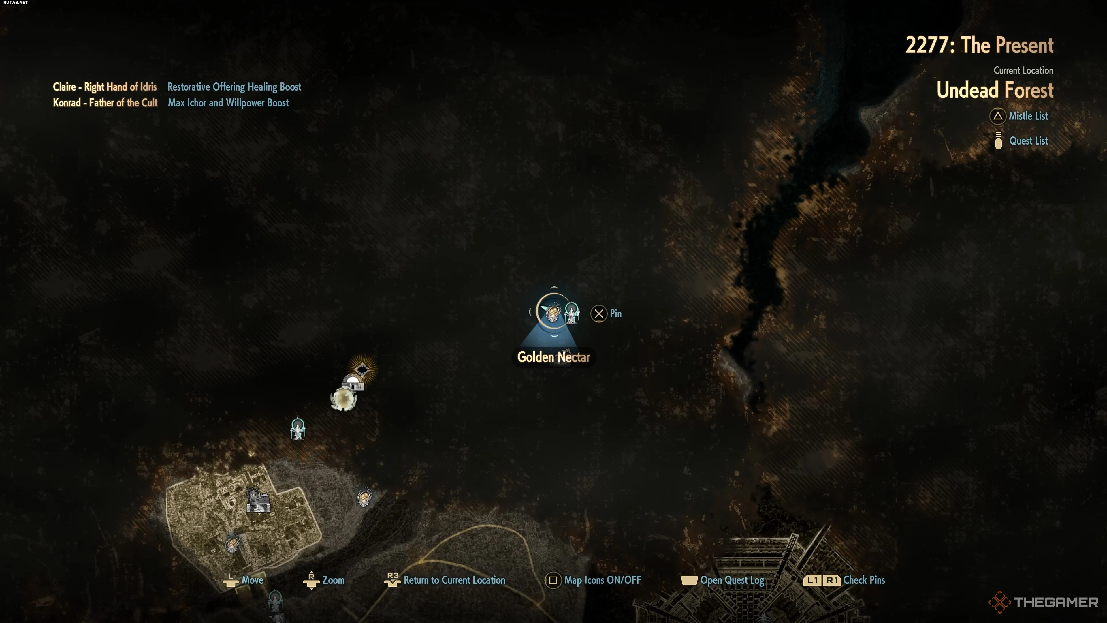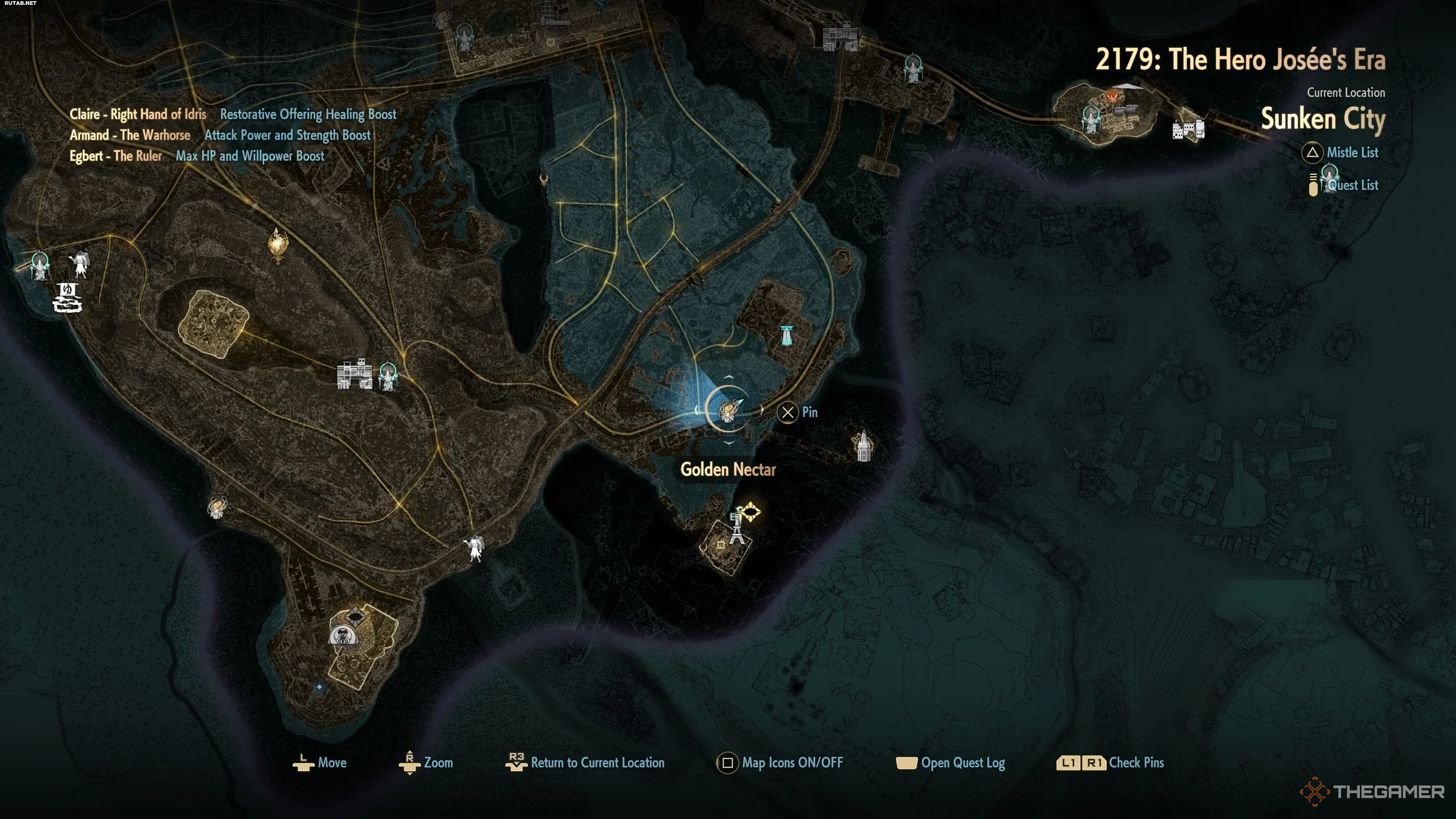В отличие от Золотых Кровавых Бусин, Золотые Нектары отмечены на карте сразу после отключения глушителя карты в определённой области. Они обозначены маленькими голубыми бликами на карте, что даёт вам примерное представление об их местоположении.