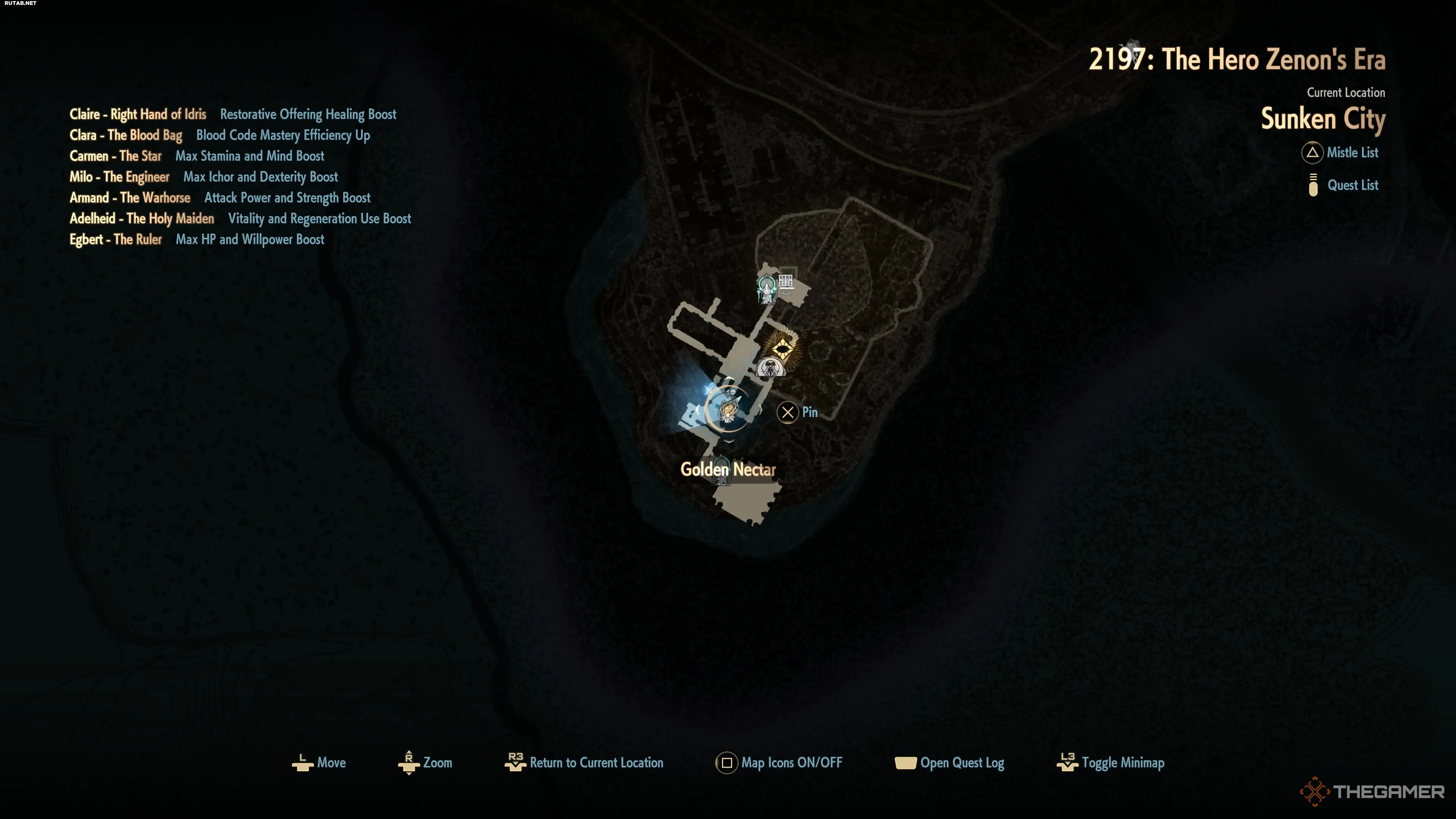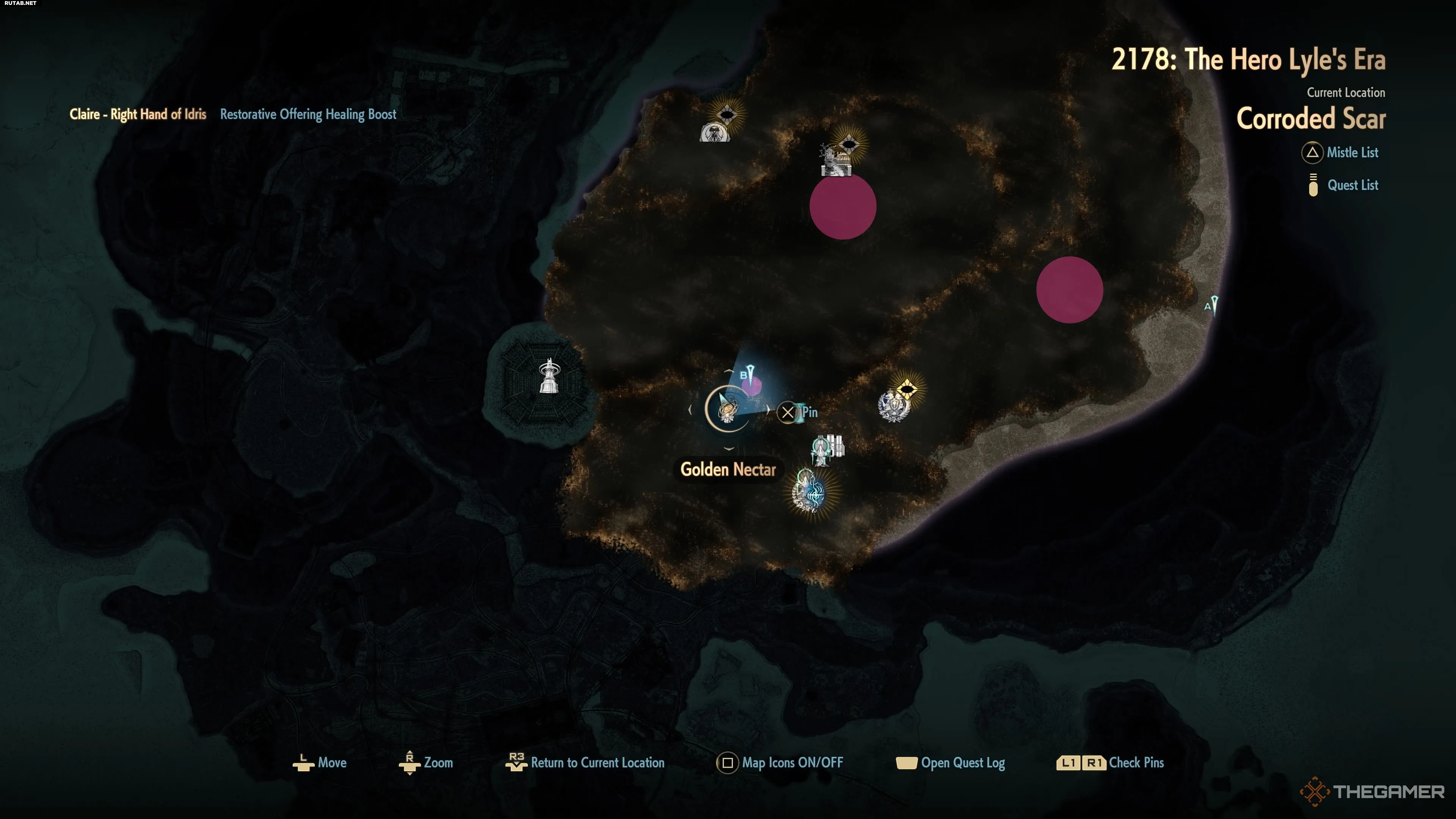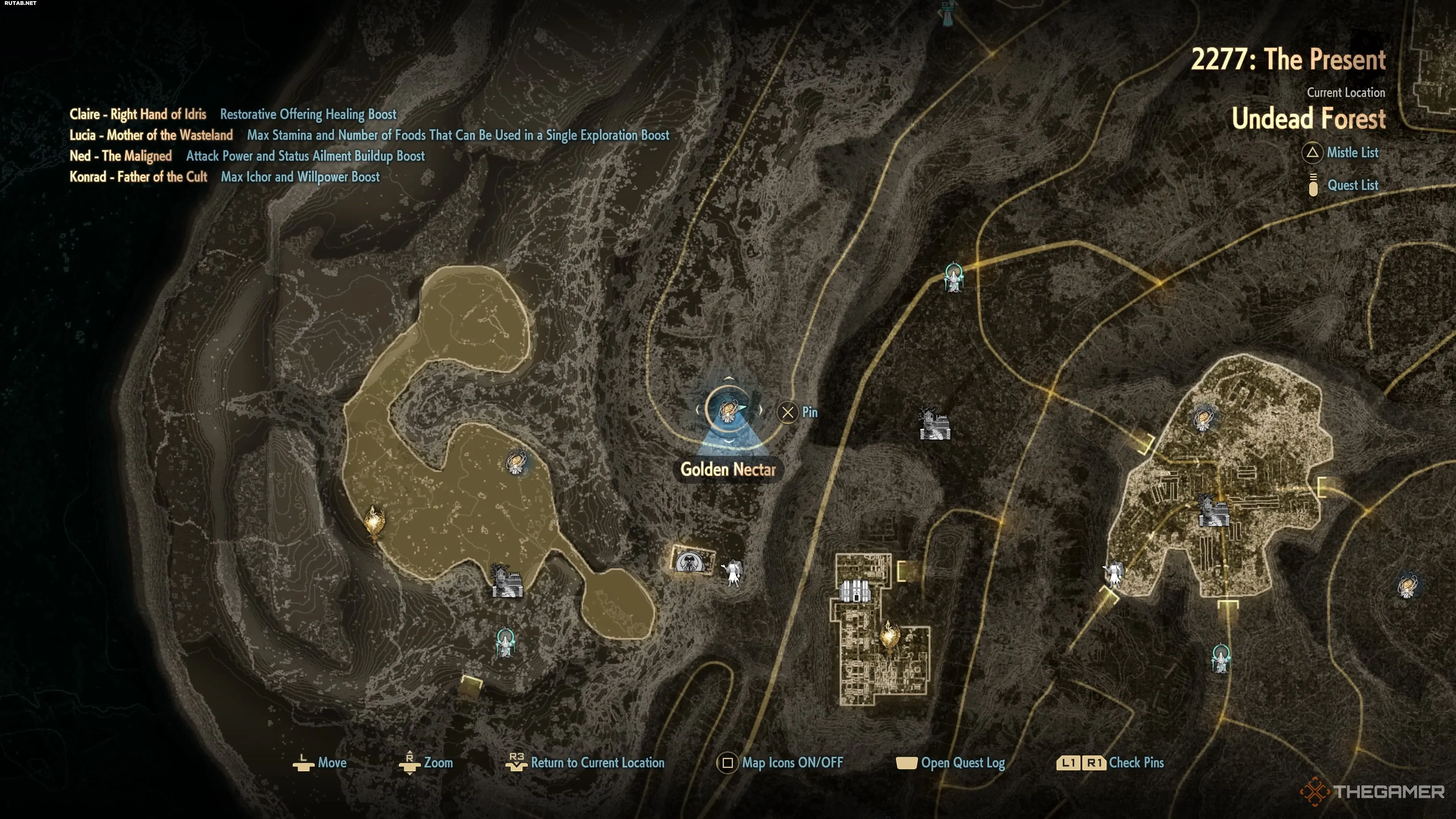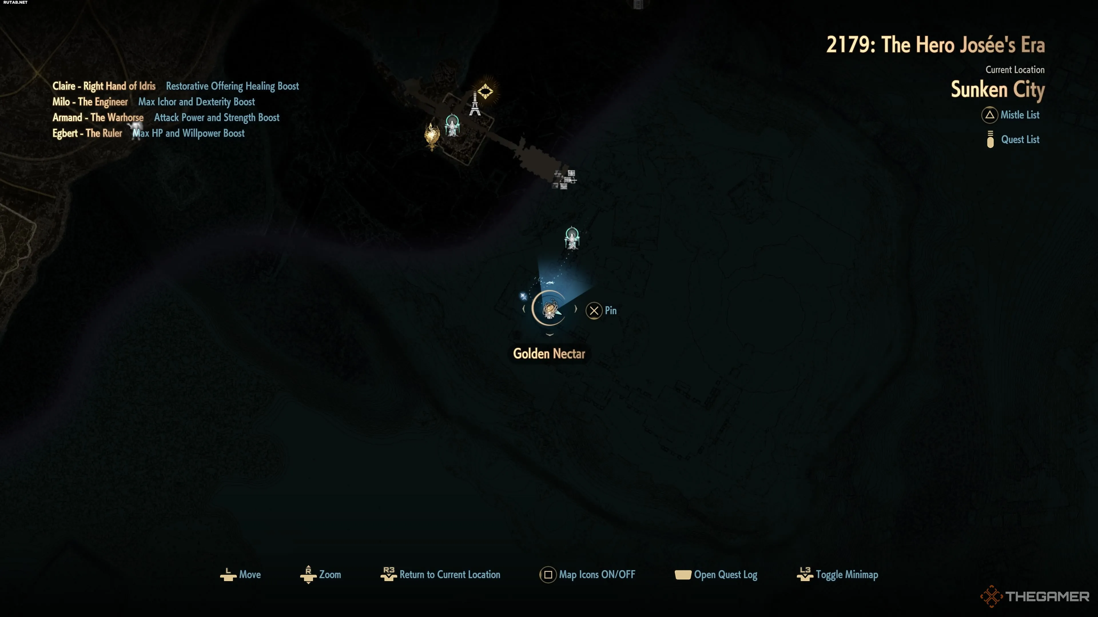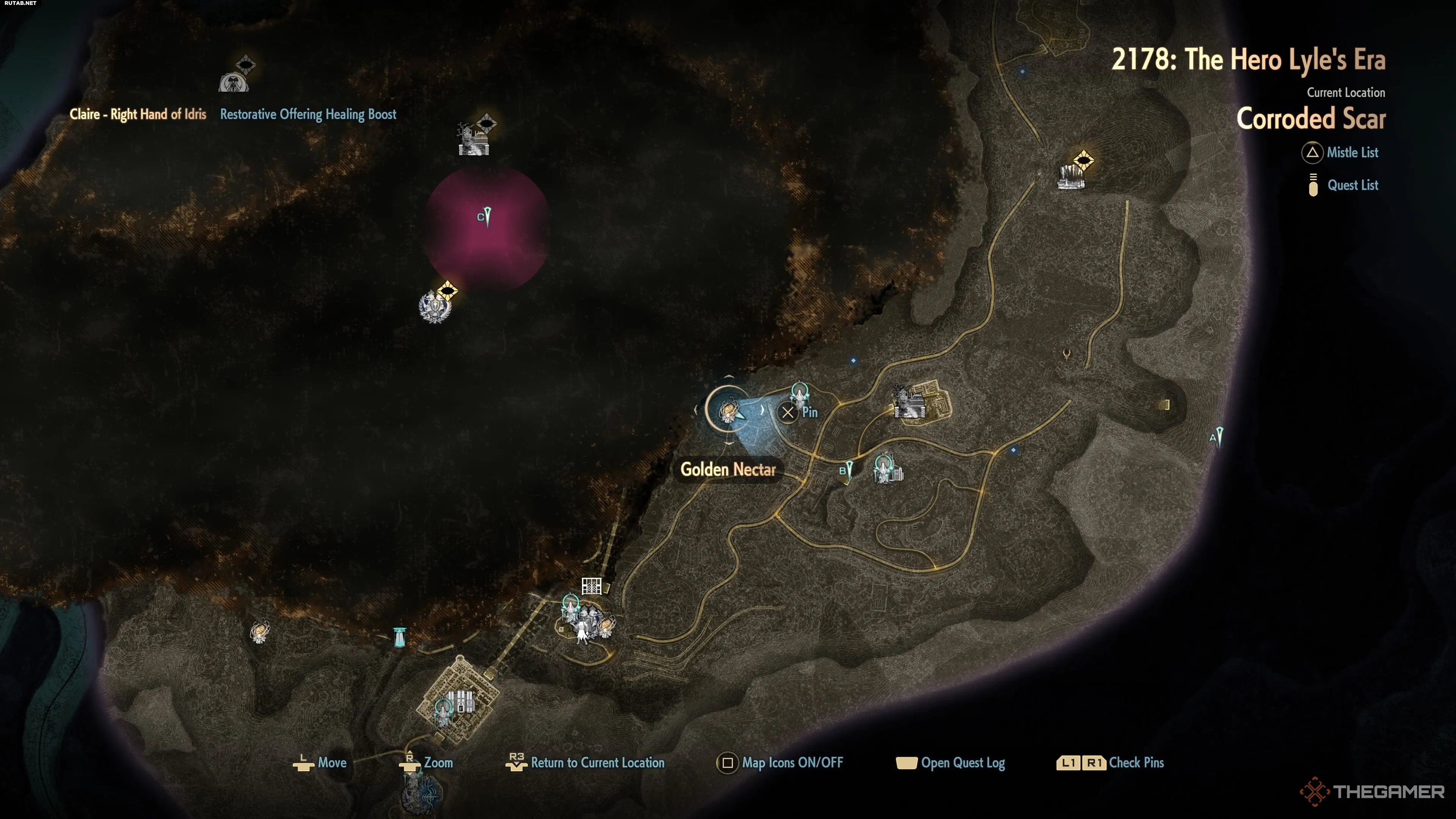 Этот Золотой Нектар находится на нижнем уровне области, под Руинами плато. Проще всего добраться до него, двигаясь на северо-восток от Мистла «Склад под мостом».