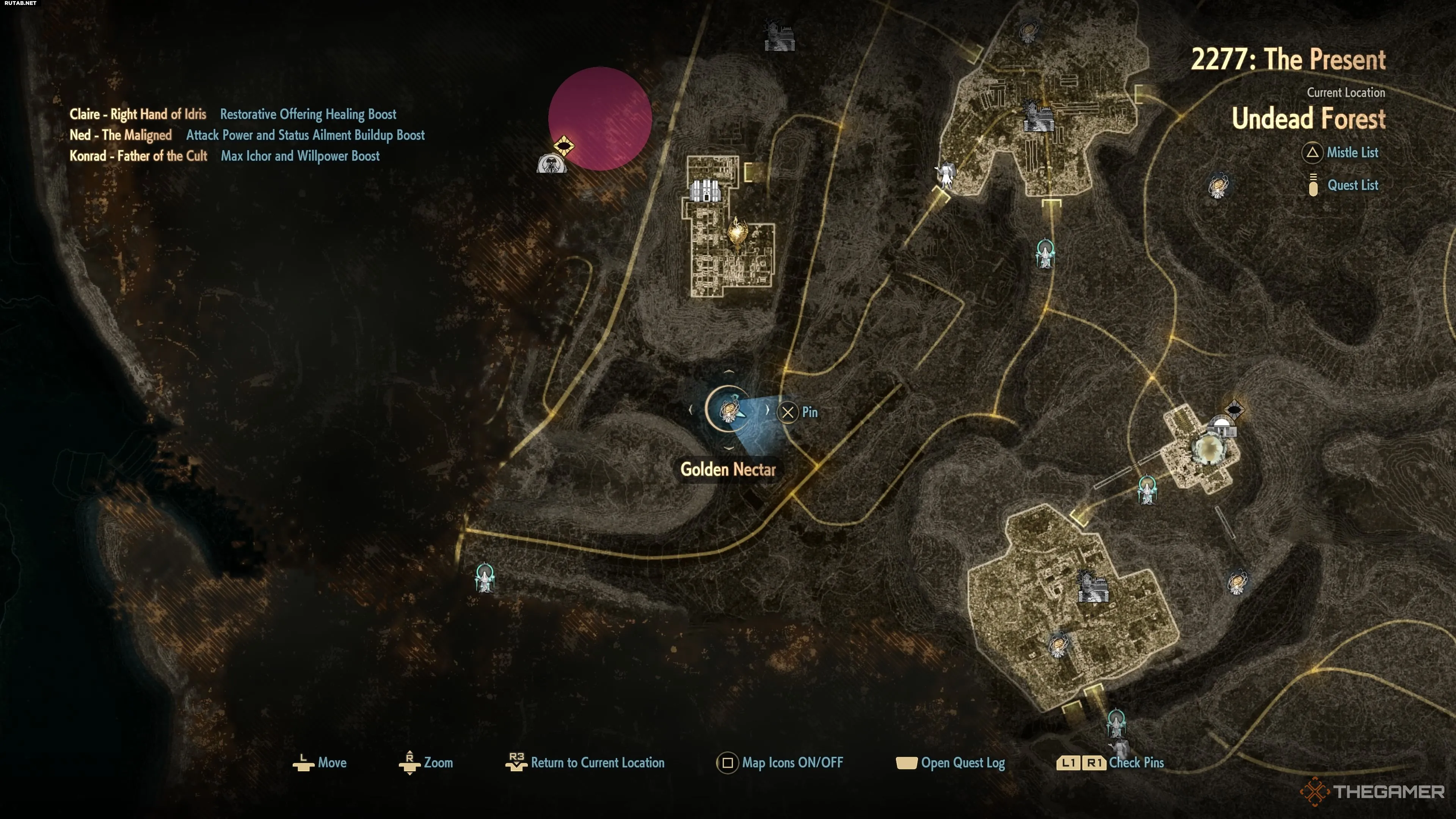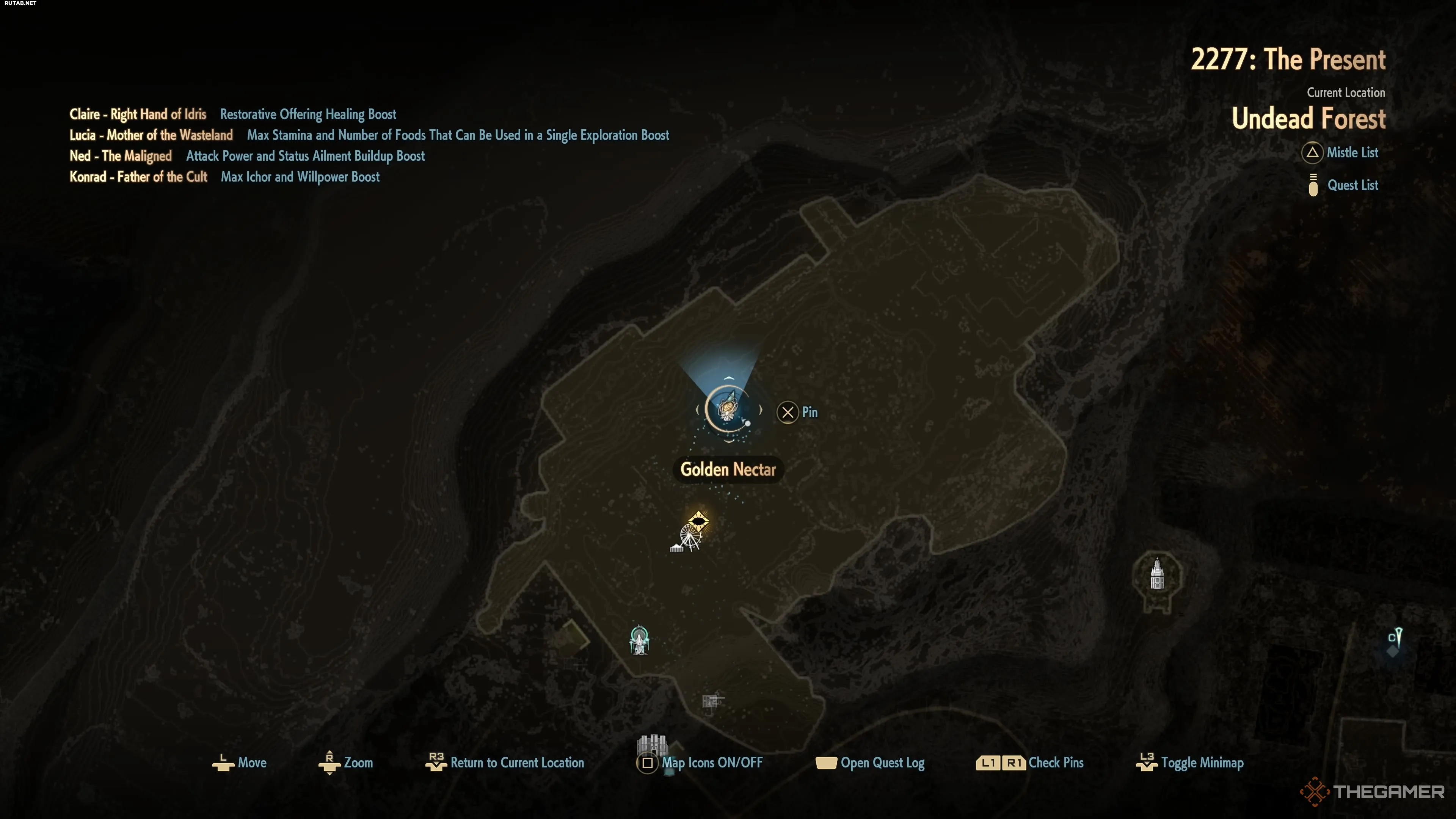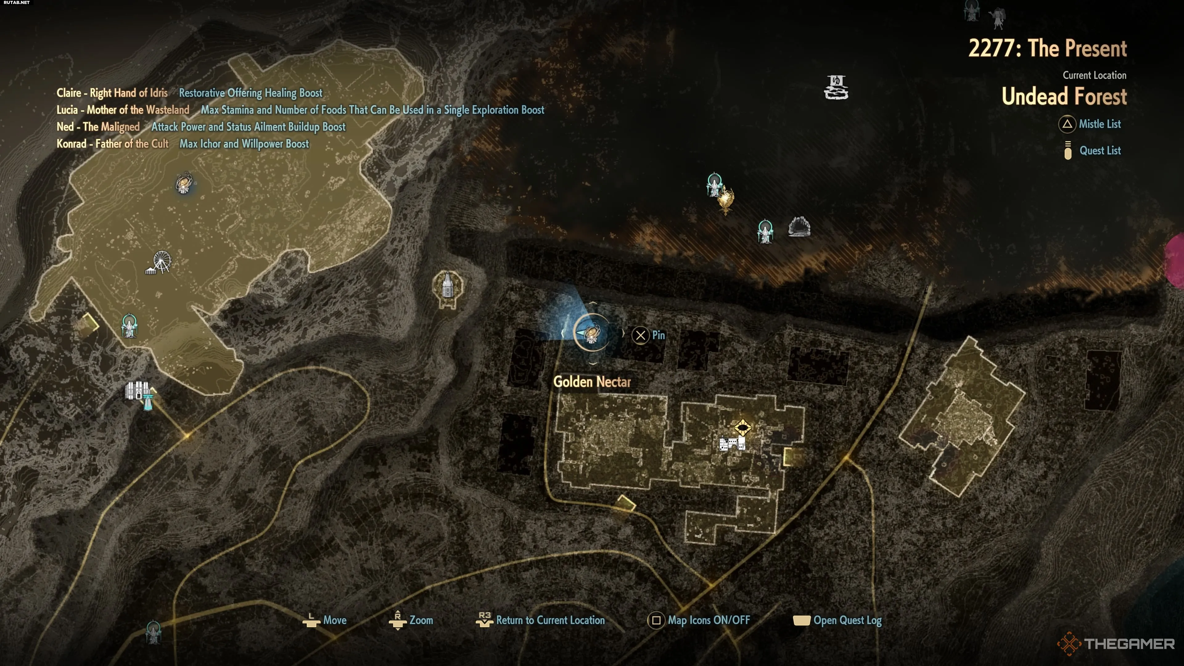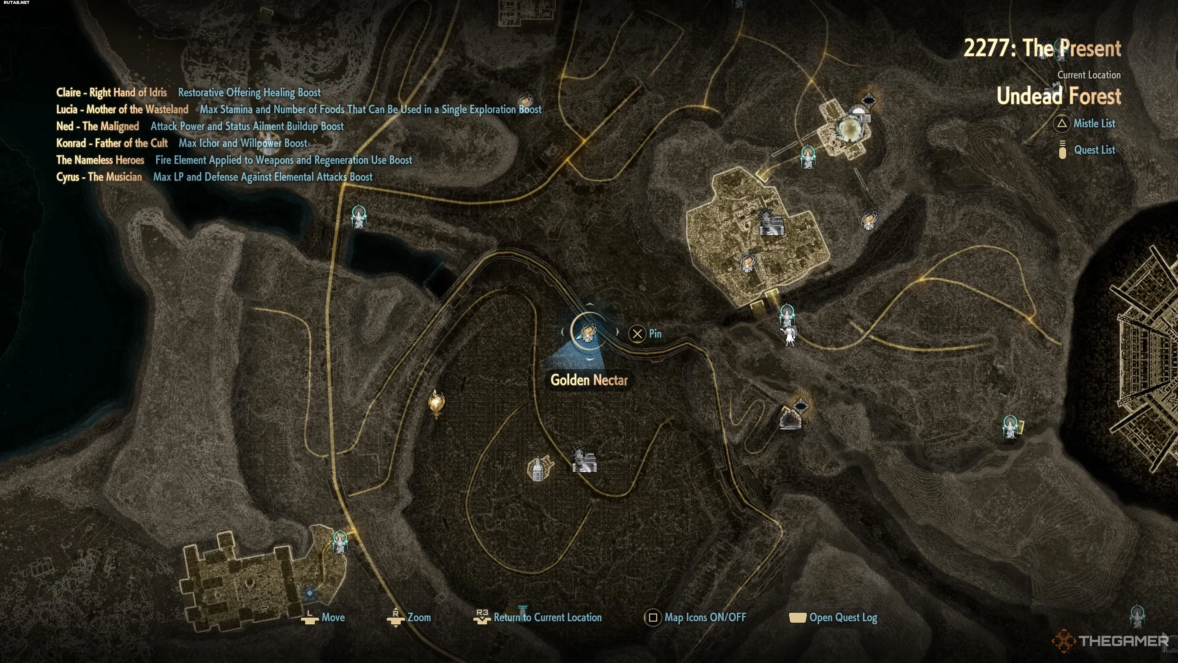 Этот Золотой Нектар находится за пределами Заражённой деревни. Чтобы добраться до него, нужно двигаться на юг от Мистла «Заброшенная оранжерея».
