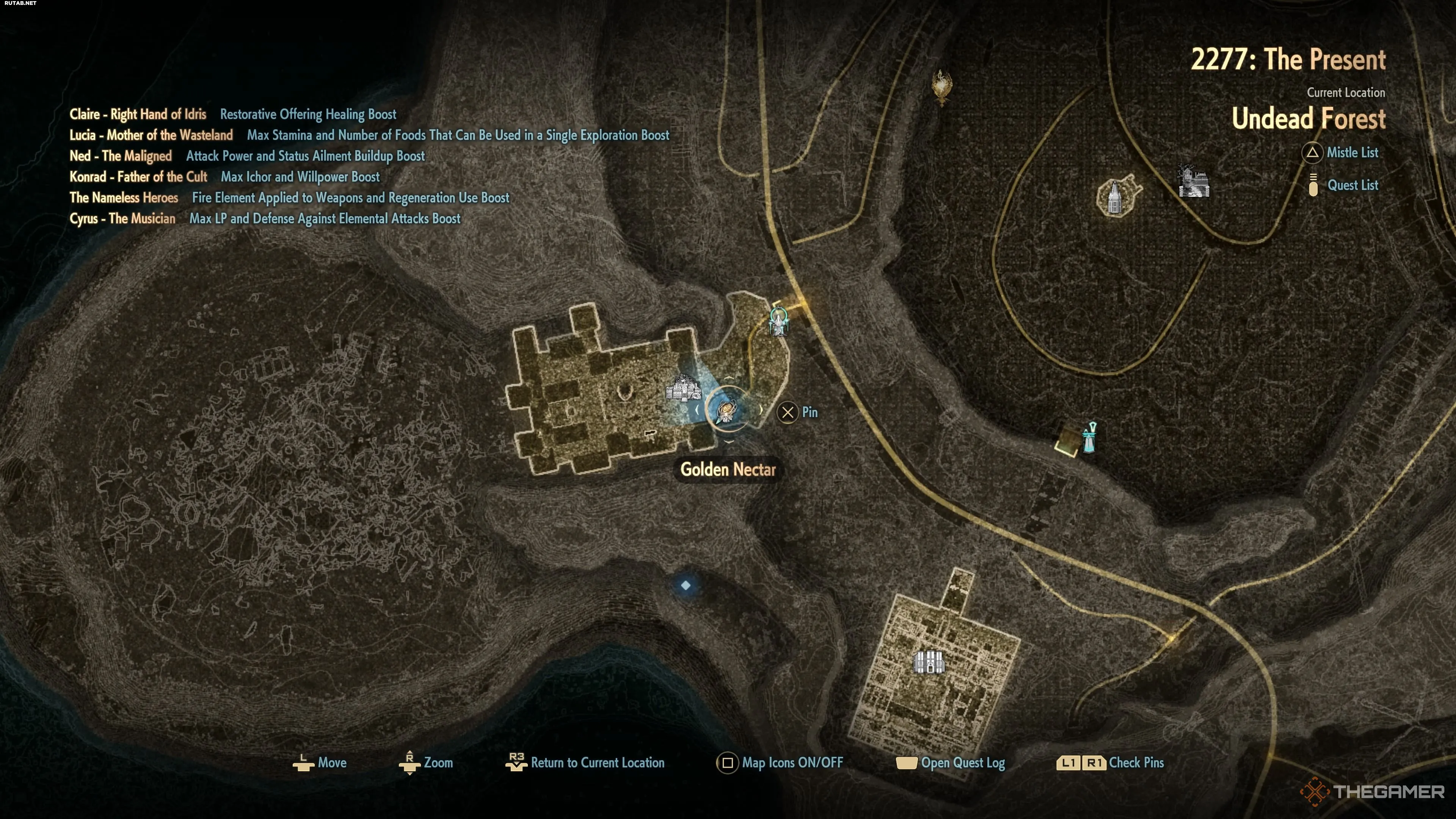 Этот Золотой Нектар находится прямо перед входом в Руины церкви у реки, рядом с Мистлом этой области.