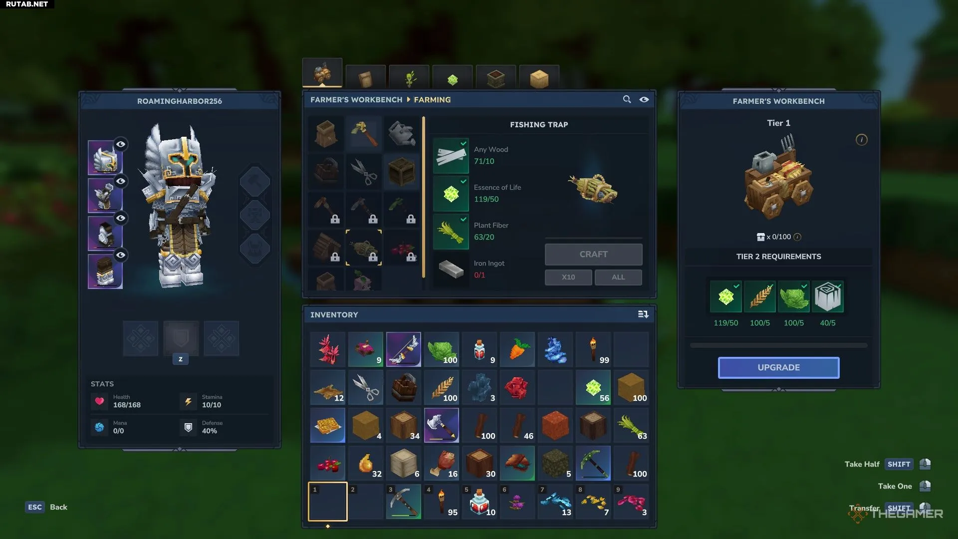 После этого вам нужно улучшить верстак фермера до 2-го уровня, чтобы получить доступ к крафту ловушки. Для улучшения потребуется: