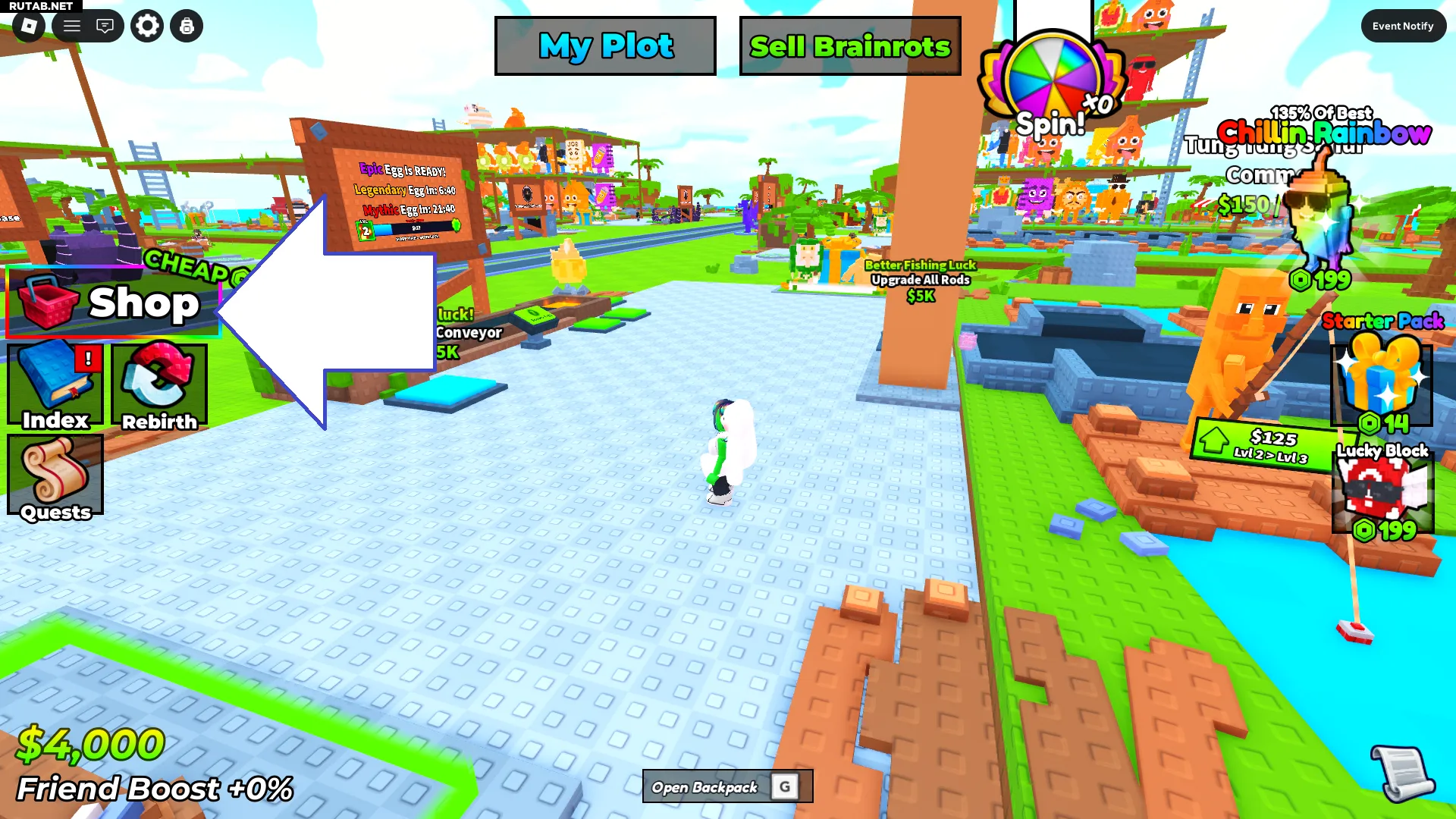 - Запустите игру My Fishing Brainrots в Roblox.