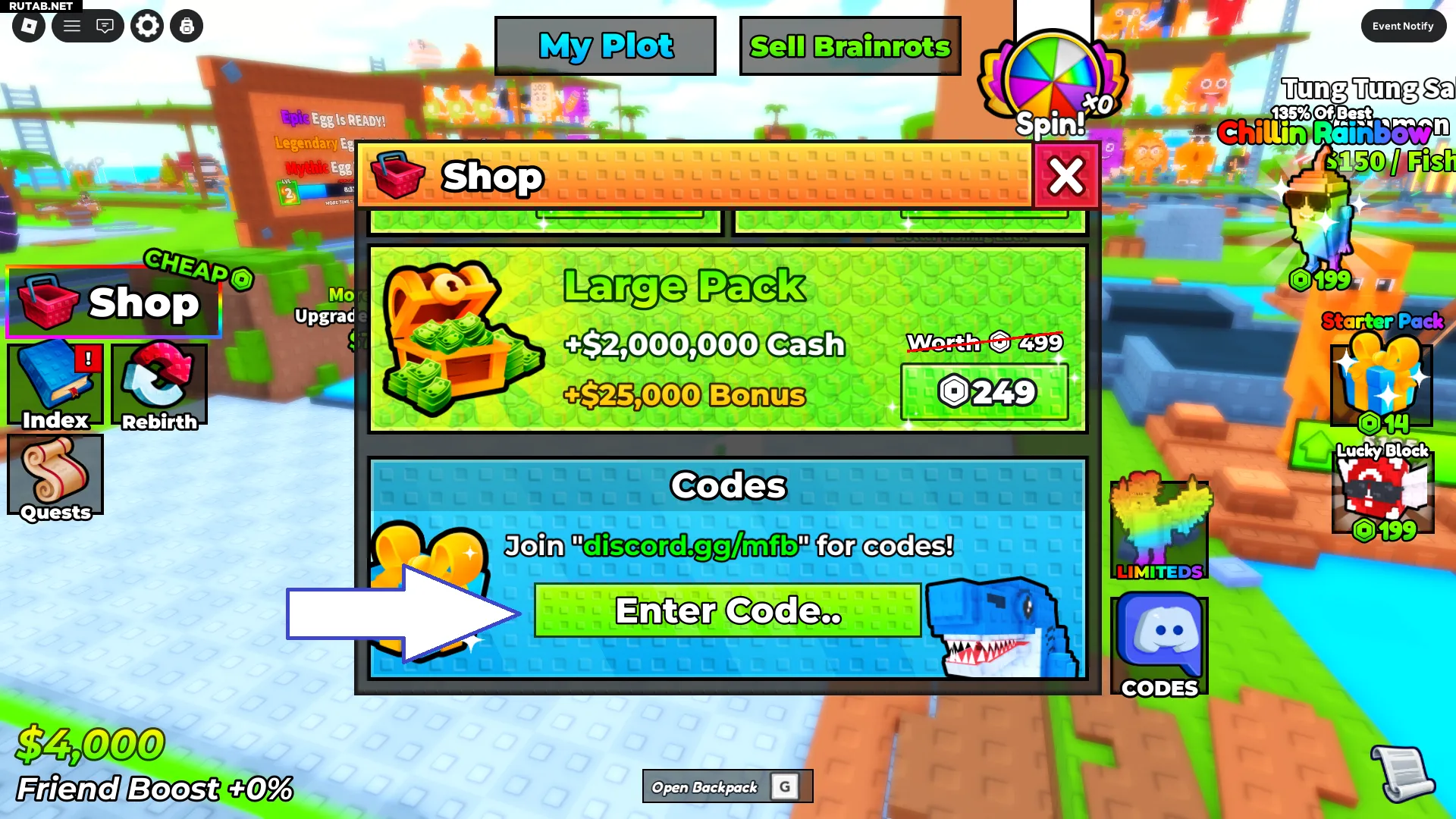 Как активировать коды в My Fishing Brainrots