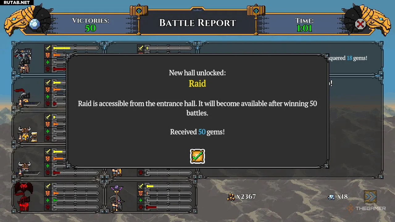 После достижения 50 побед откроются рейды, но для противостояния мощным рейдовым боссам, таким как Пещерный тролль, вам потребуется значительно прокачать своих гномов через систему рун.