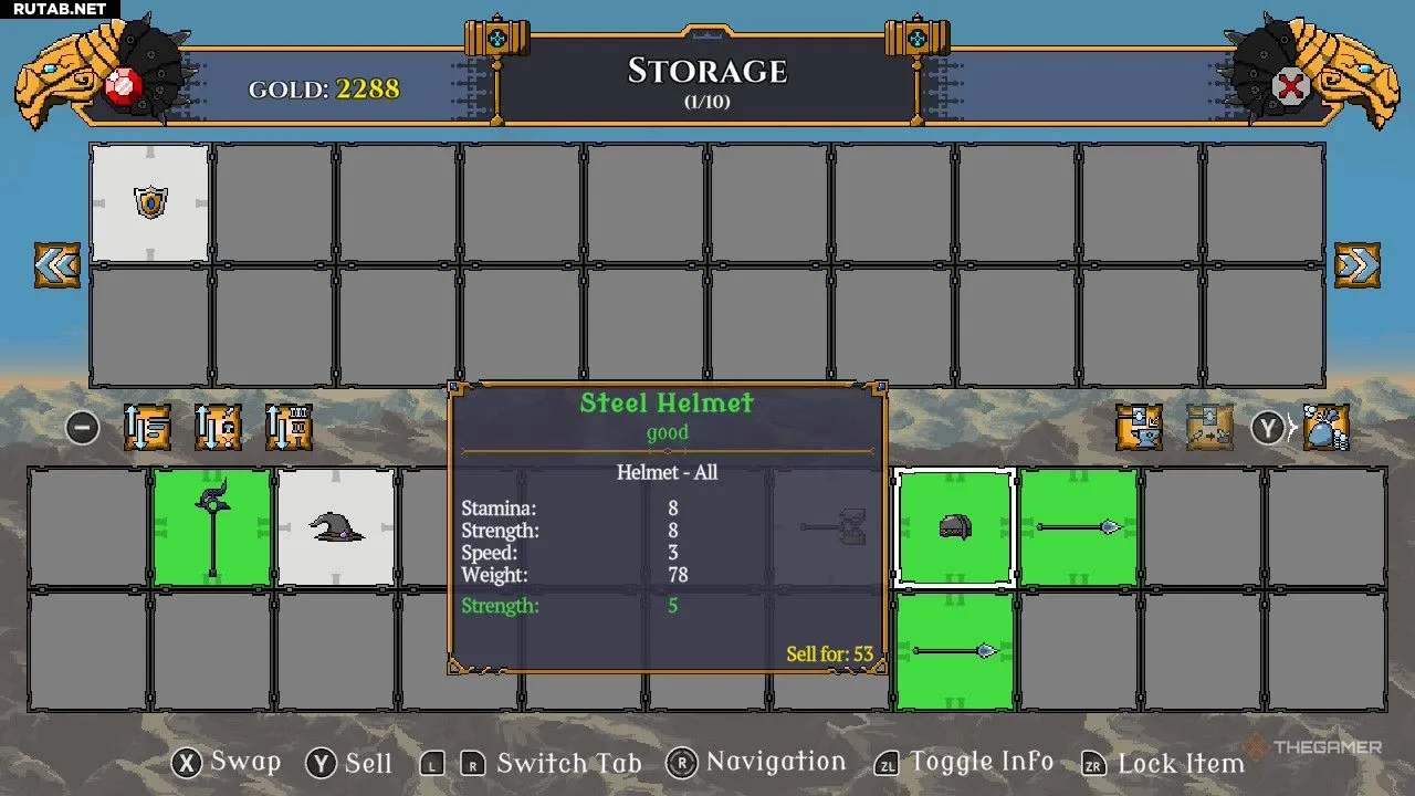 Система хранилища — огромное подспорье для переноса прогресса между забегами. Одна из лучших тактик — снять лучшую экипировку с самых сильных персонажей, когда вы чувствуете, что упёрлись в стену.