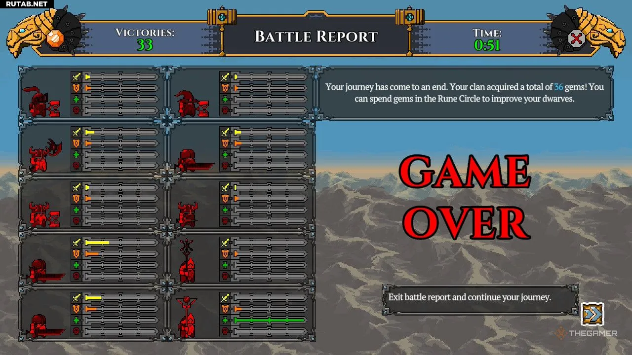 В этой игре побеждает медленный, но верный прогресс. Поэтому лучшие забеги начинаются быстро, но требуют неторопливого развития, чтобы вы могли заменить гномов ранней игры на более сильных персонажей и экипировать их лучшей амуницией.
