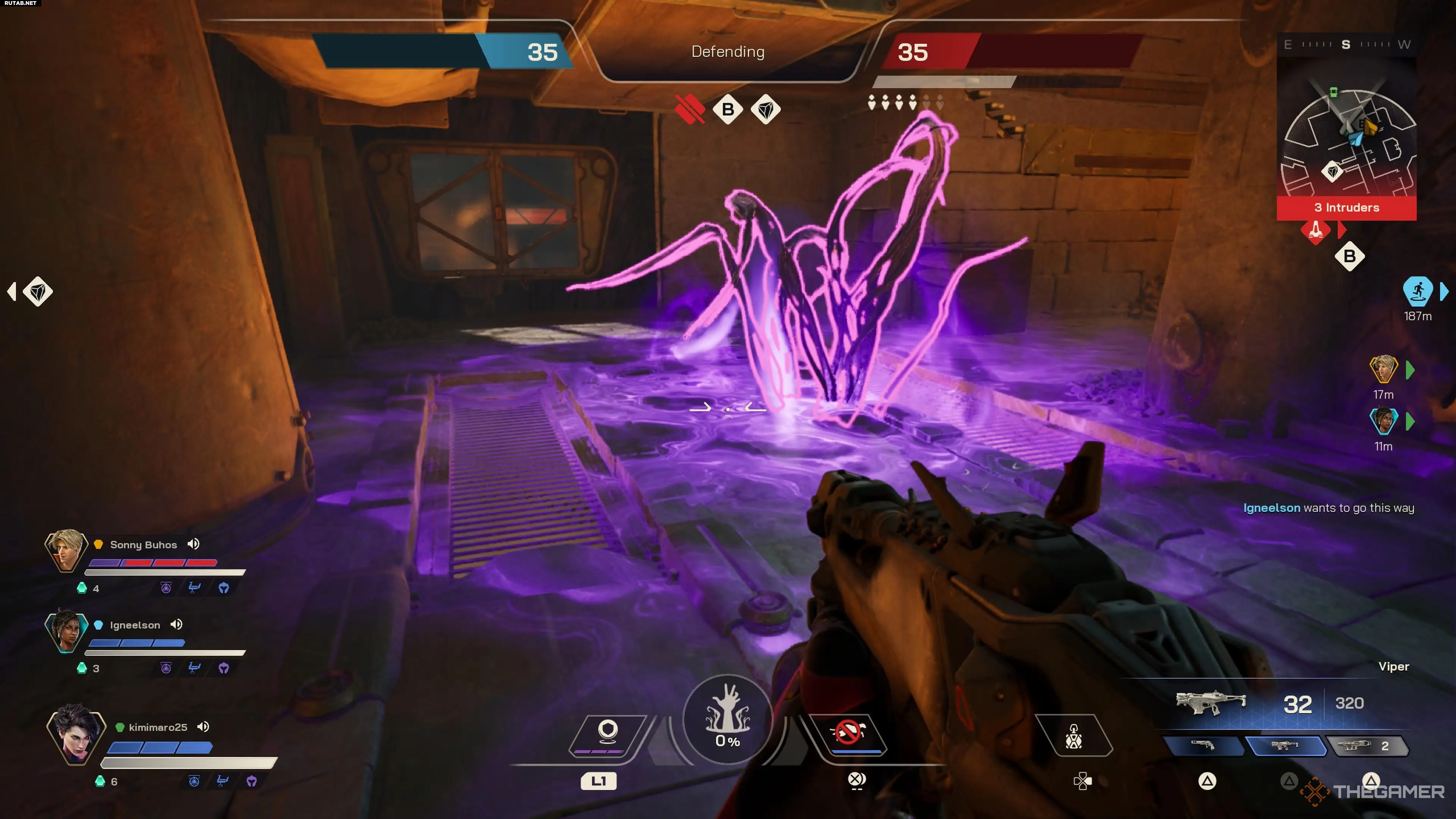 Абсолютная способность Мары позволяет ей создать дополнительную точку возрождения для себя и своих союзников. При активации вы и ваши напарники увидите фиолетовую точку возрождения в меню респавна.