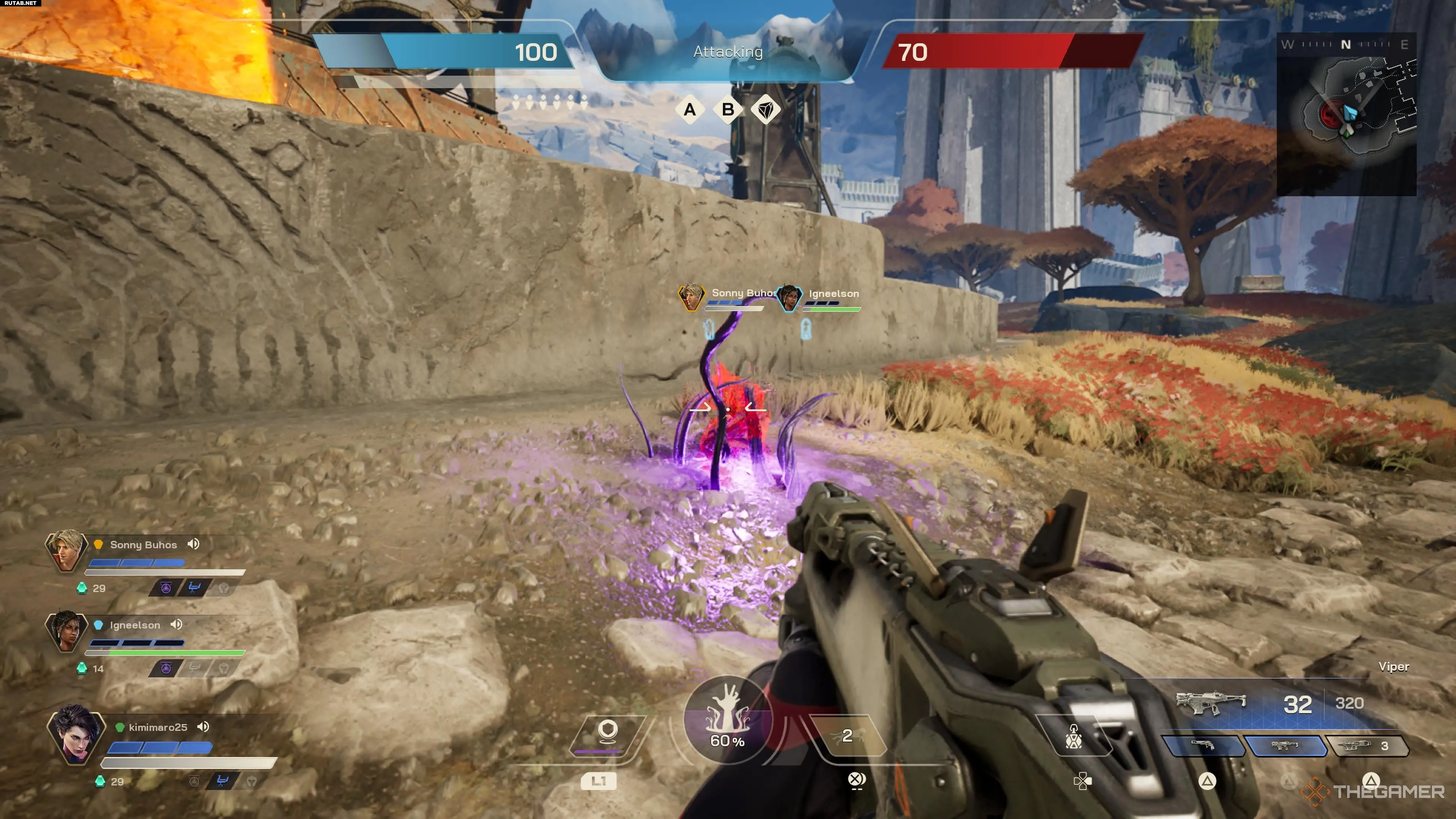 С помощью пассивной способности вы можете поглощать ядро павших врагов, чтобы быстрее заряжать свою абсолютную способность. Для этого наведитесь на вражеское ядро и удерживайте кнопку возрождения, когда появится подсказка. Вместо возрождения противника вы поглотите его ядро.