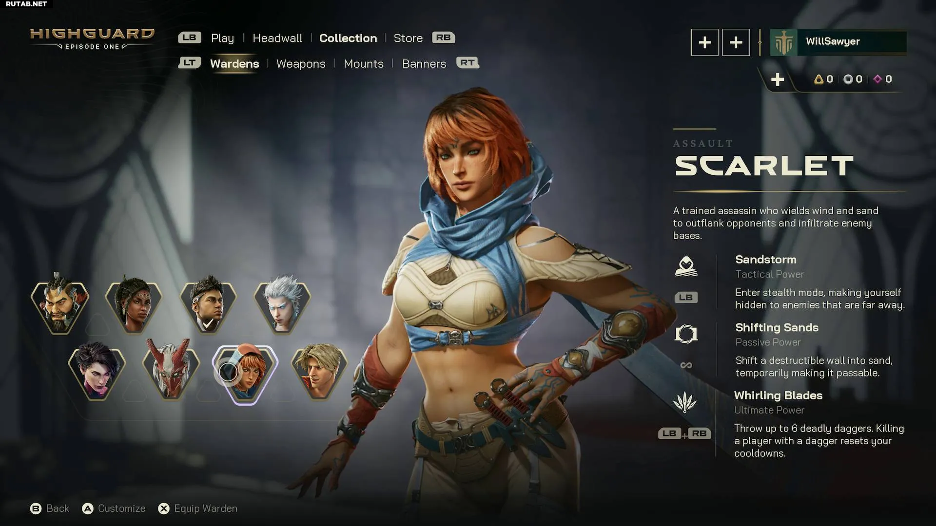 Скарлет — превосходный штурмовой персонаж типа убийцы с очень синергичным набором способностей, позволяющим ей переигрывать врагов в любой боевой ситуации. Невидимость от «Песчаной бури» позволяет легко зайти с фланга, а «Зыбучие пески» создают бреши в обороне противника, помогая всей команде ворваться внутрь. Комбинация этих способностей с её ультимативной способностью «Вихрь клинков» позволяет уничтожить целую команду за считанные секунды.