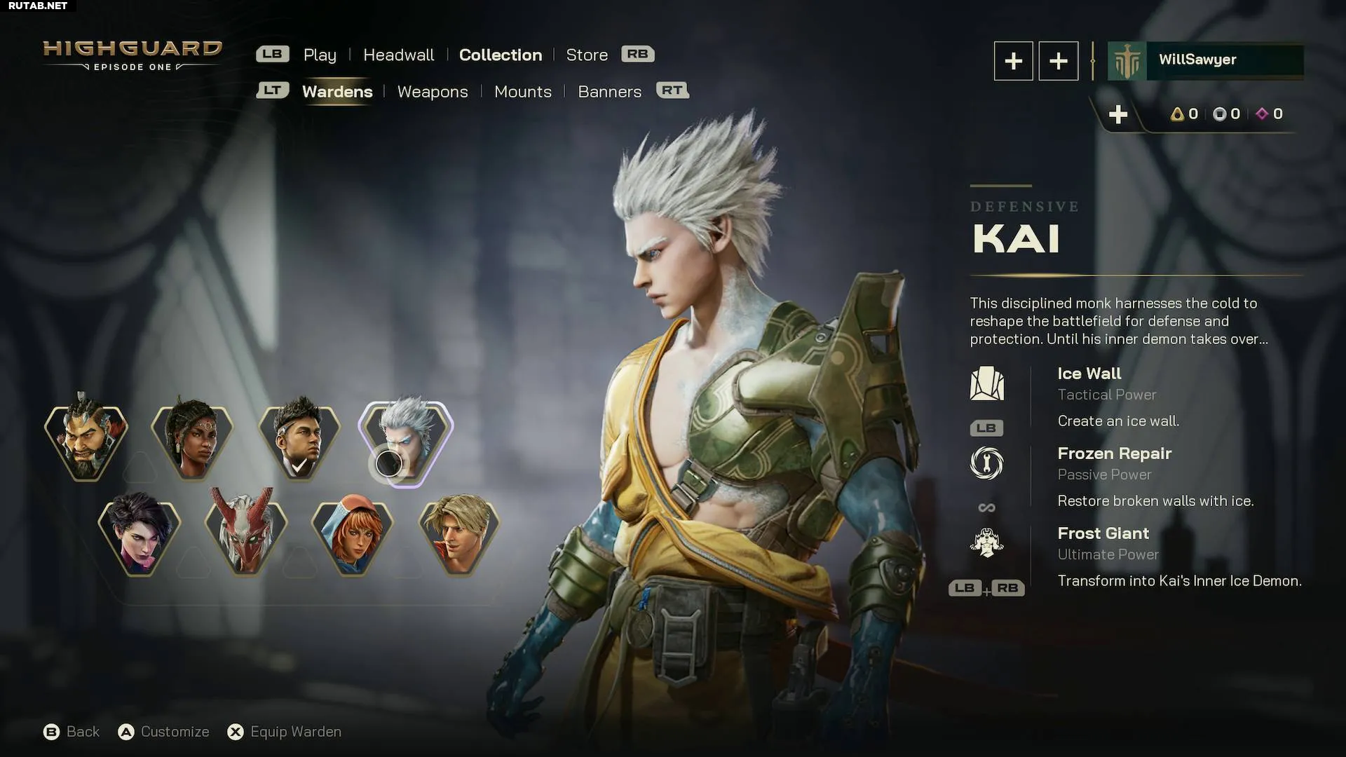 Способность Кая создавать массивную «Ледяную стену» и превращаться в могучего «Ледяного великана» со щитом делает его на данный момент лучшим оборонительным персонажем в Хайгарде. Он способен блокировать огромный урон и прикрывать союзников способностями, которые подходят практически для любого сценария. Его умение чинить стены с помощью «Ледяного ремонта» также делает его ценным членом команды, особенно при обороне своей базы.
