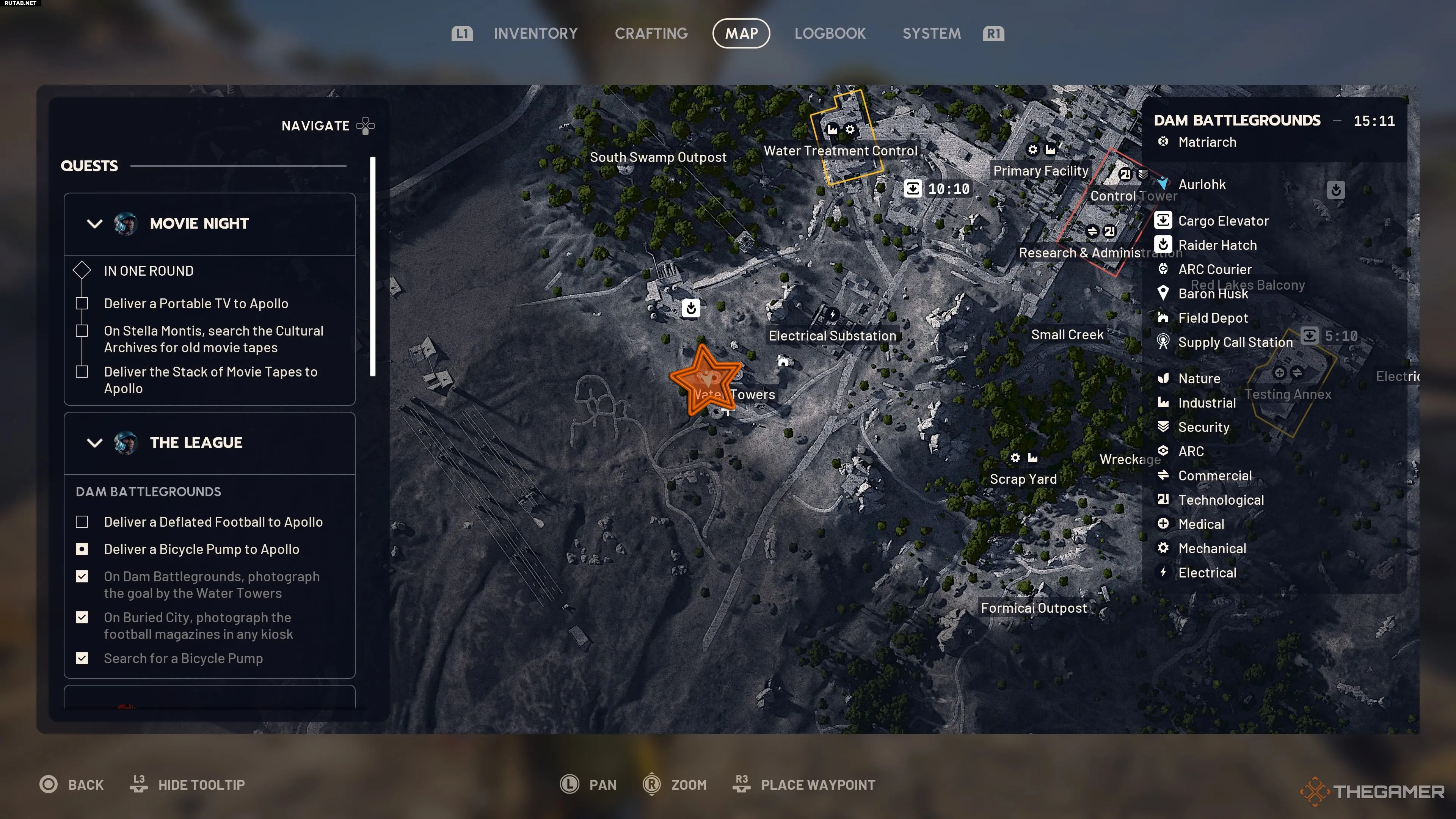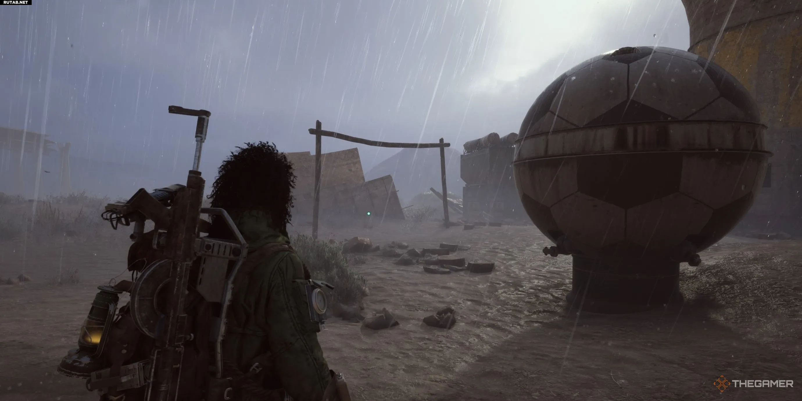 Следующая цель — найти и сфотографировать футбольные ворота. Они расположены у Водонапорных башен на карте «Поля сражений у дамбы».