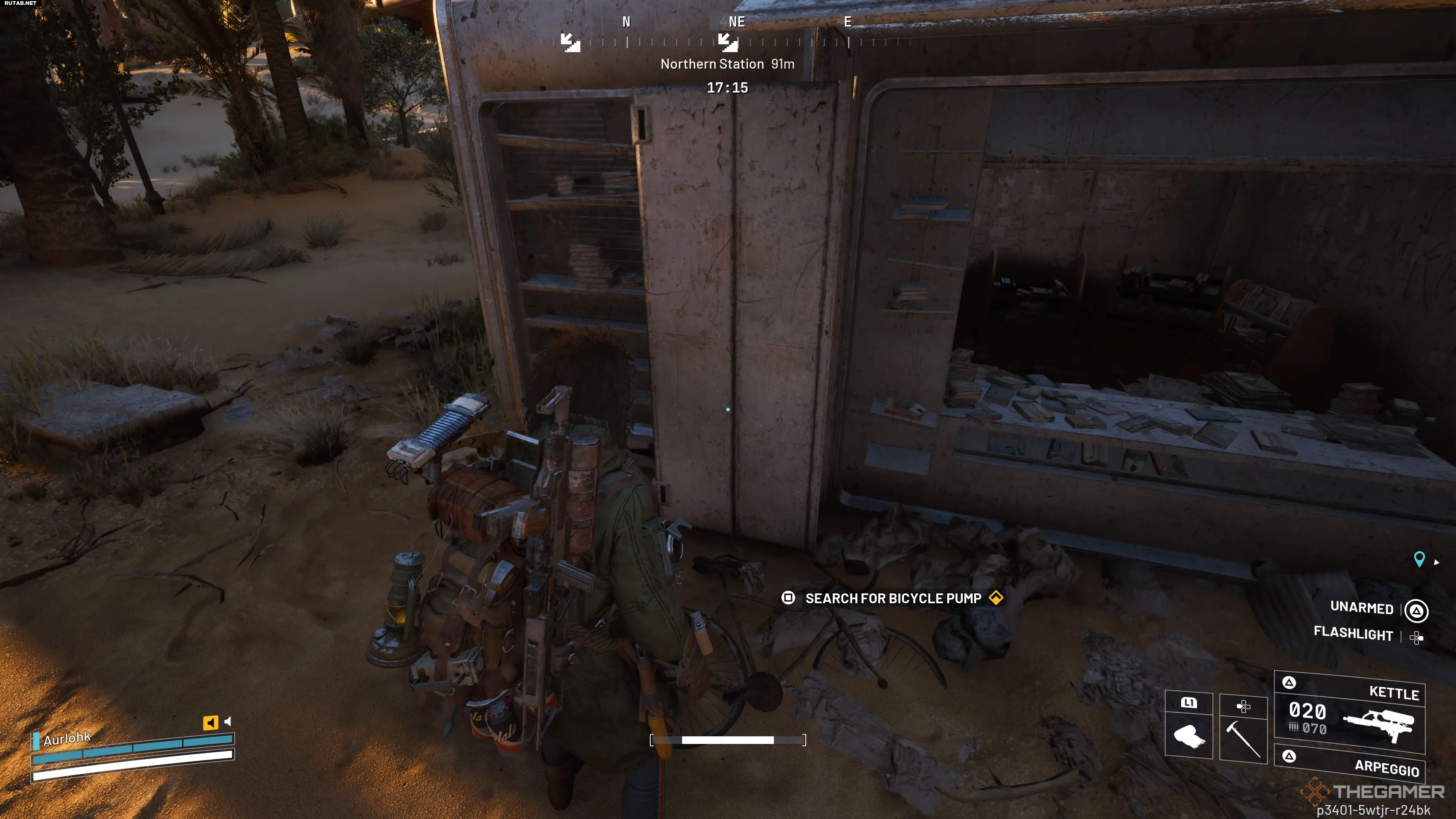 Отправляйтесь в центр «Засыпанного города», в парк Марано. Справа от парка, недалеко от фонтана, вы найдете не засыпанный землей киоск. Рядом с ним будет сломанный велосипед — взаимодействуйте с ним, чтобы гарантированно получить насос.