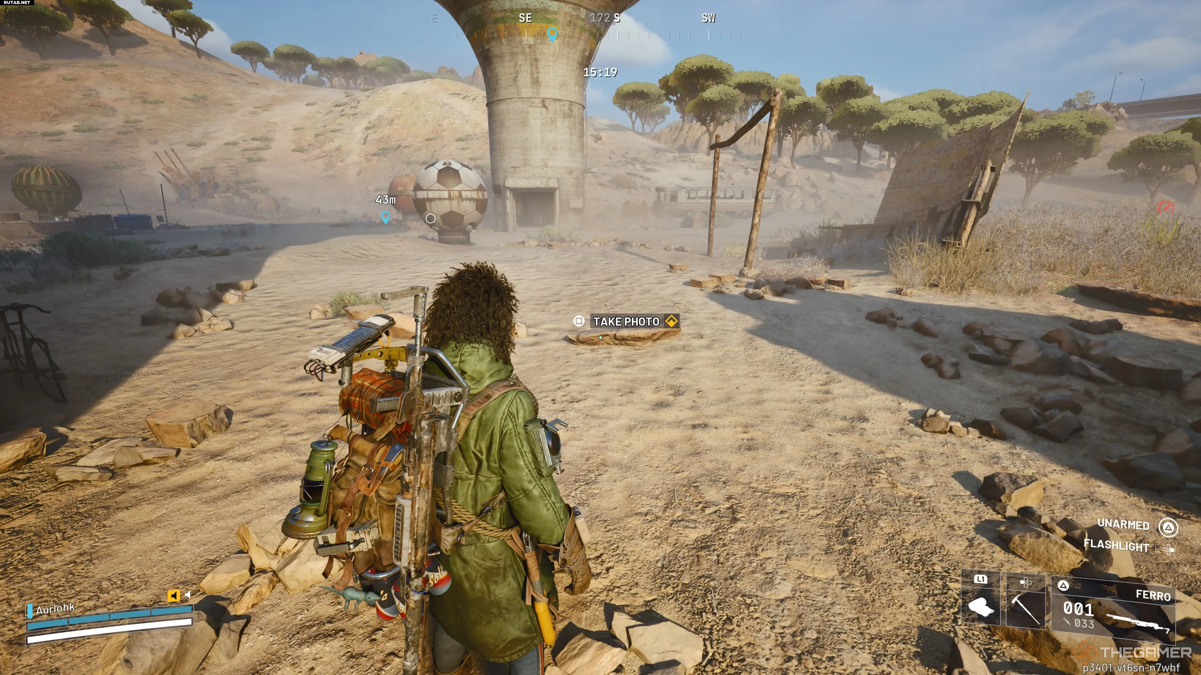 Доберитесь до юго-западного угла карты, к югу от Электрической подстанции. Вы увидите несколько больших круглых сооружений, одно из которых раскрашено под гигантский футбольный мяч. Рядом с ним и стоят ворота. Подойдите и сделайте снимок.