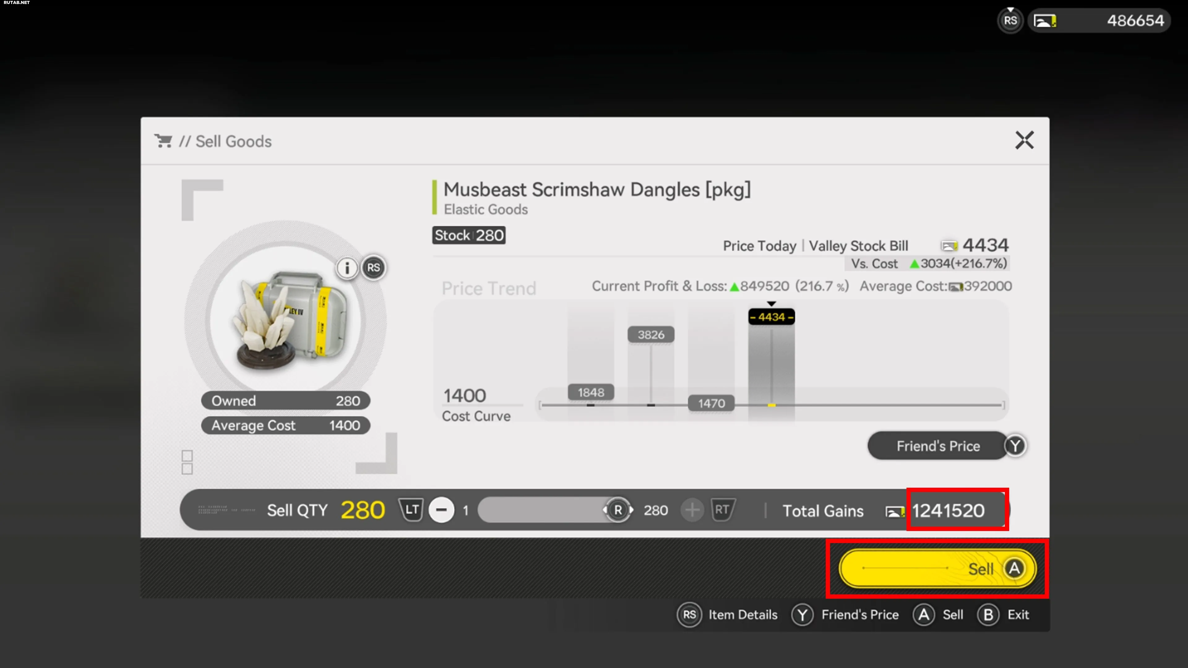 Например, на изображении выше комплект «Подвески из резной кости музбиста» стоит 1400 векселей. Но на корабле друга этот же товар можно продать за 4434 векселя, что дает прибыль в 3034 векселя за единицу.