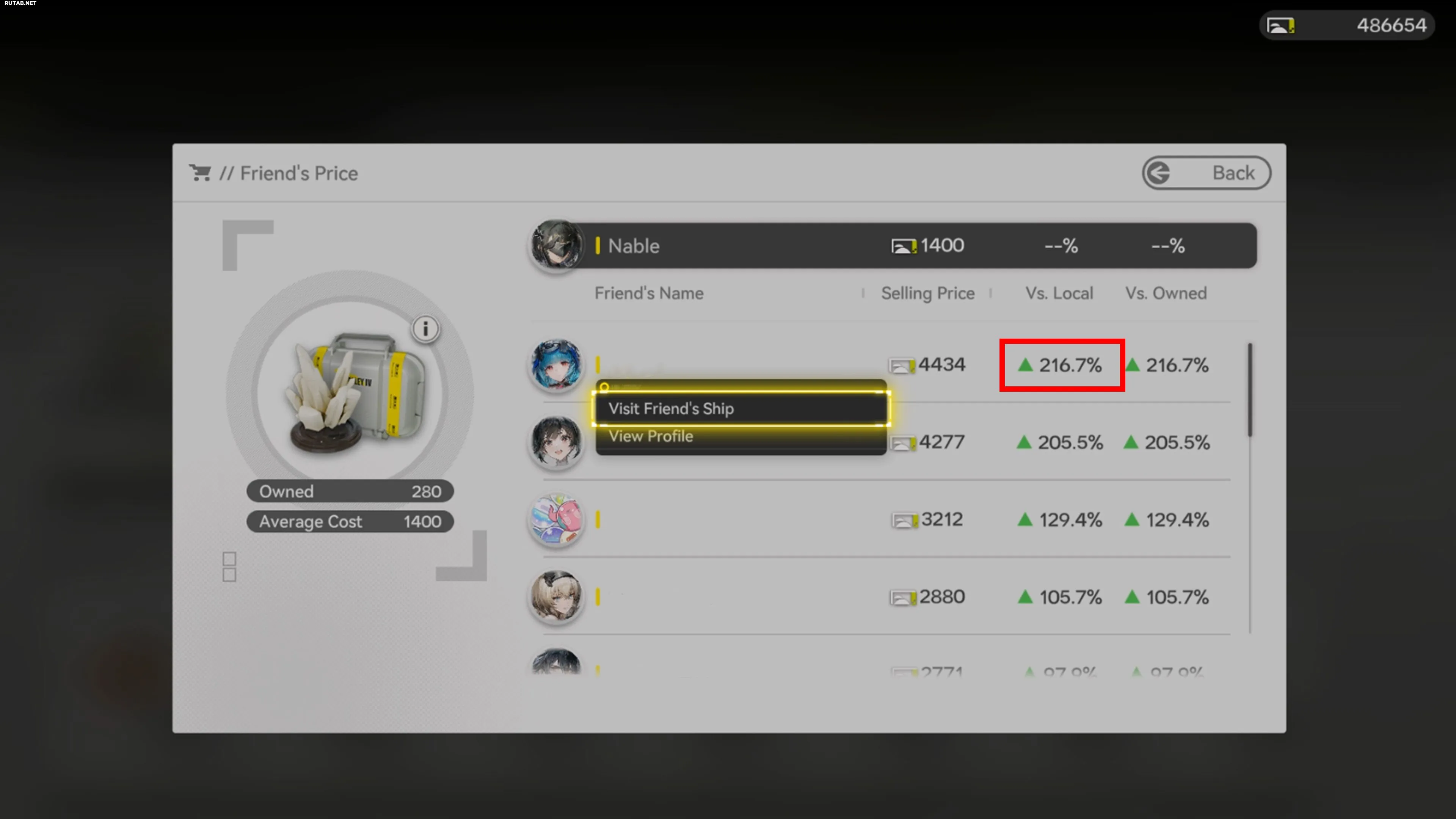 - Откроется список с ценами на этот товар у ваших друзей. Проверьте, по какой сделке вы получите наибольшую прибыль, и купите товар.