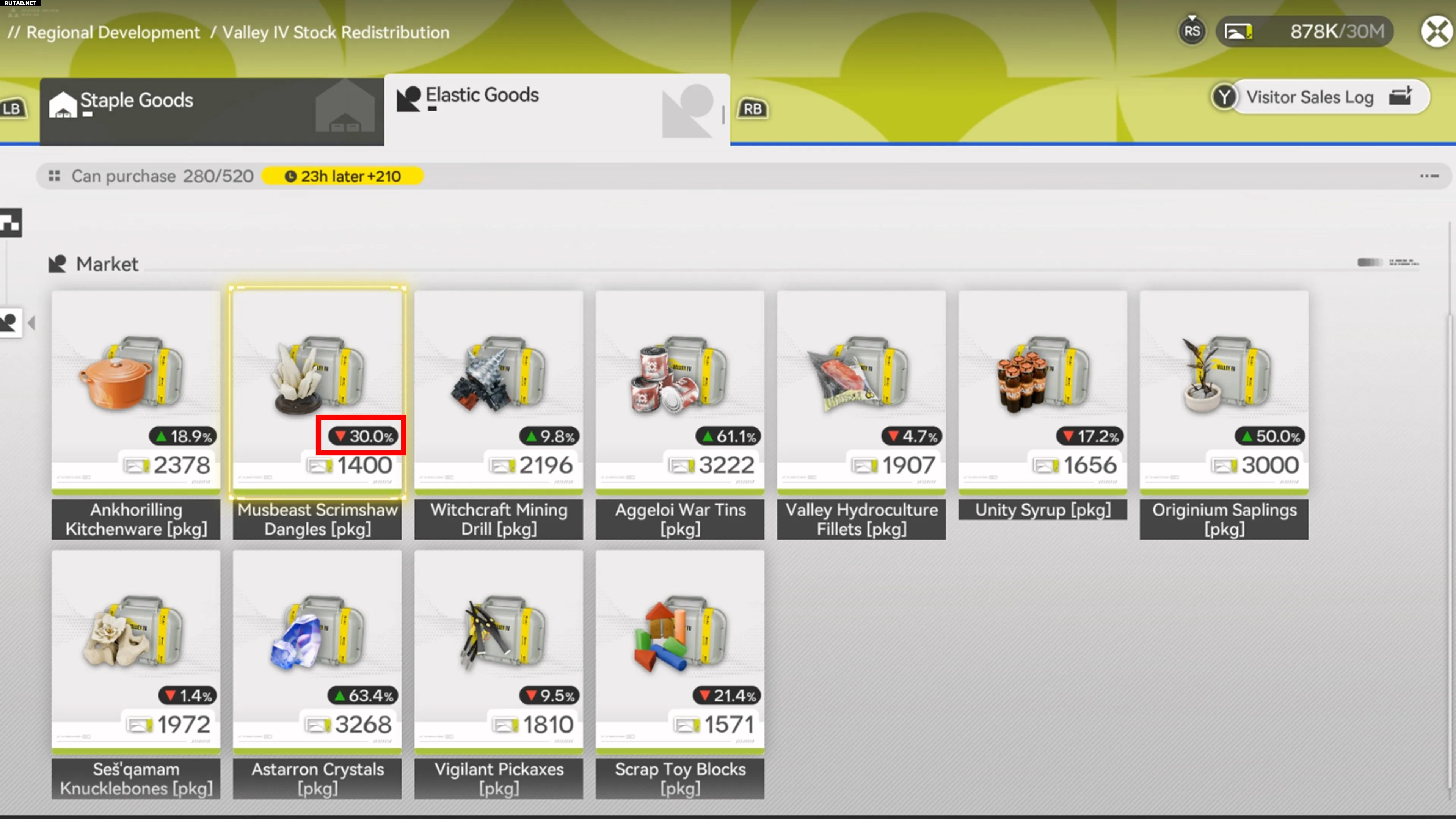 Здесь можно обменять «Векселя на запасы» на различные товары: базовые разрешения на найм, 5-звездочное оружие и материалы для повышения уровня. Также здесь можно покупать или продавать «Эластичные товары» в зависимости от ежедневно обновляемой рыночной цены.