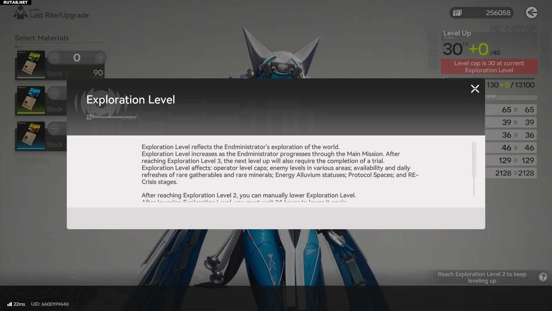 Уровень исследования — это показатель вашего прогресса в сюжете и общей силы отряда. Если вы знакомы с другими играми-гэча, то это аналог Мирового уровня в Genshin Impact, фазы SOL3 в Wuthering Waves или Уровня равновесия в Honkai: Star Rail.