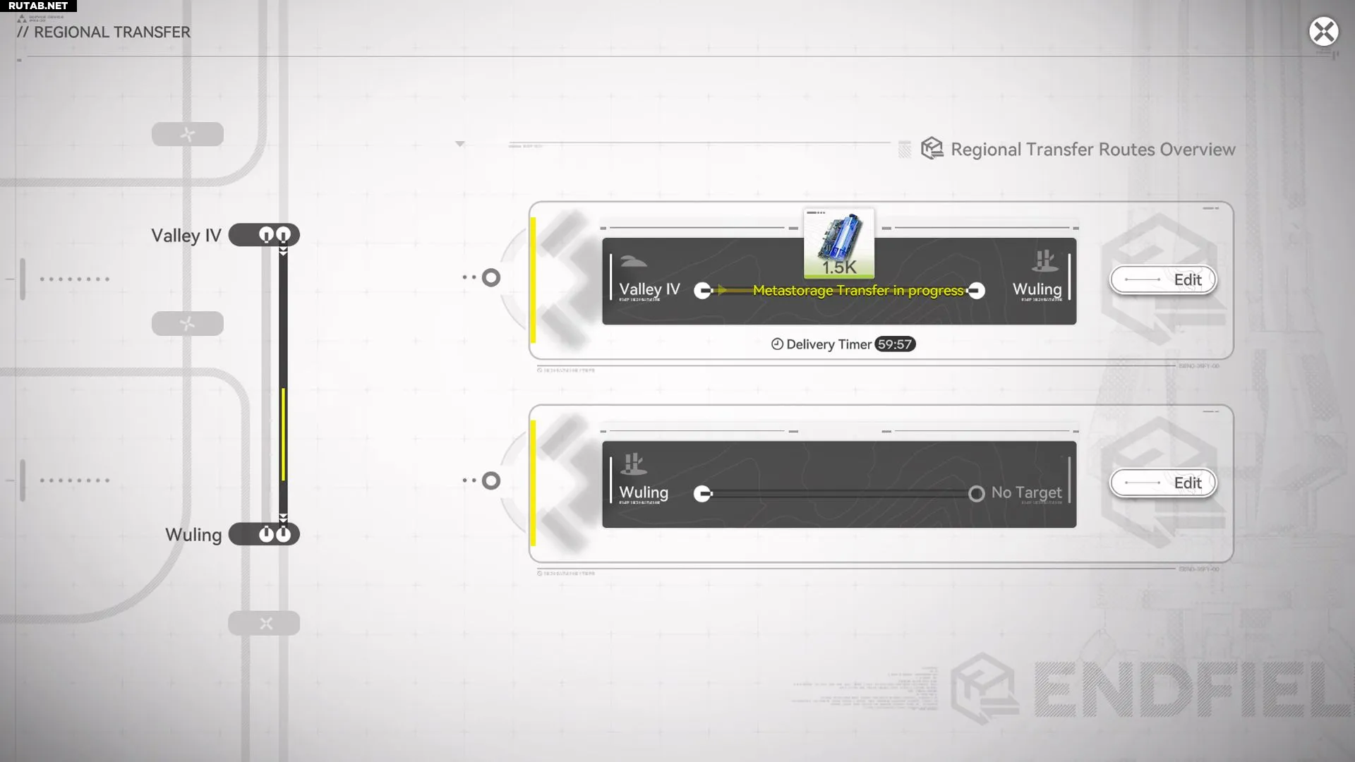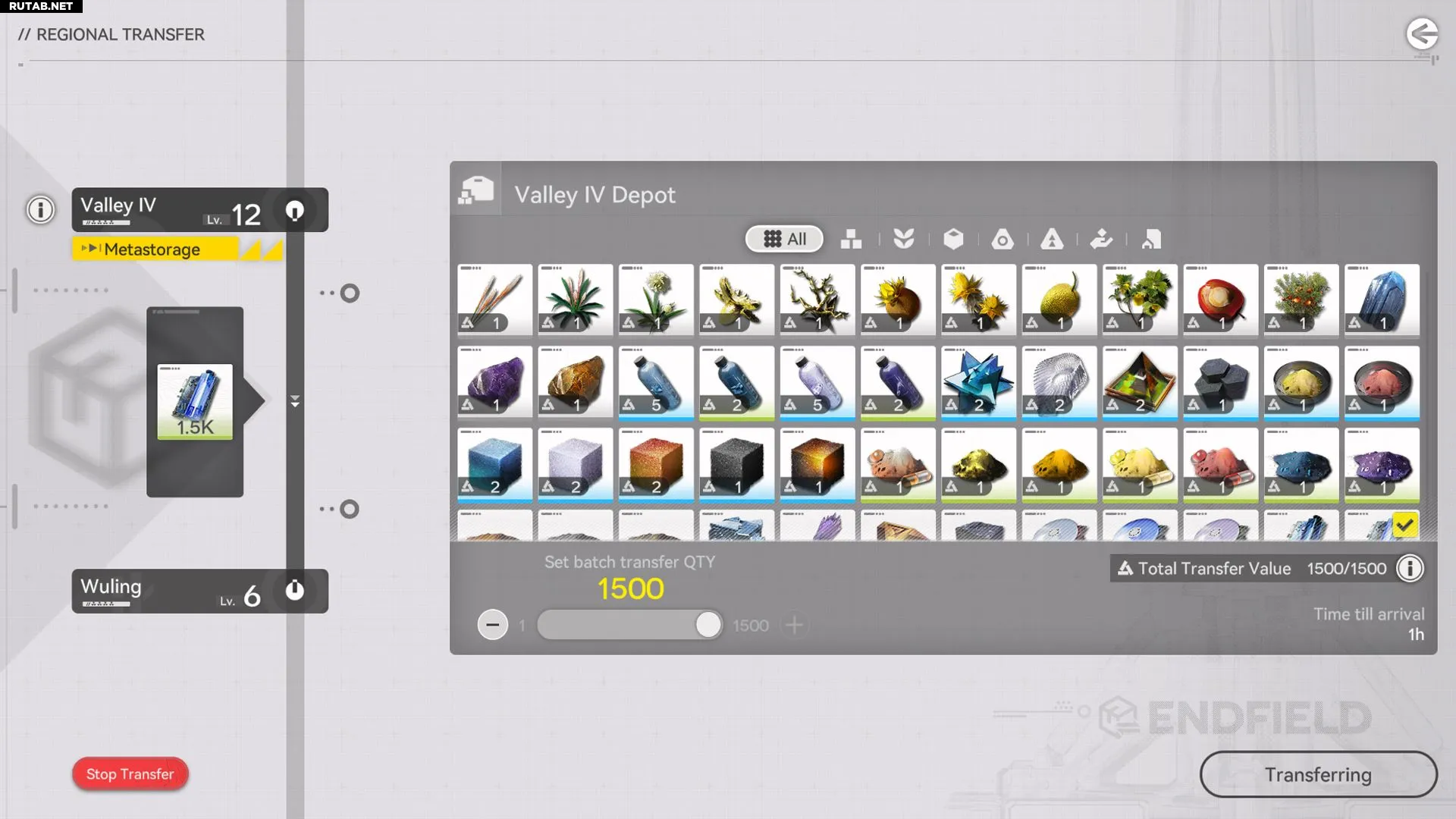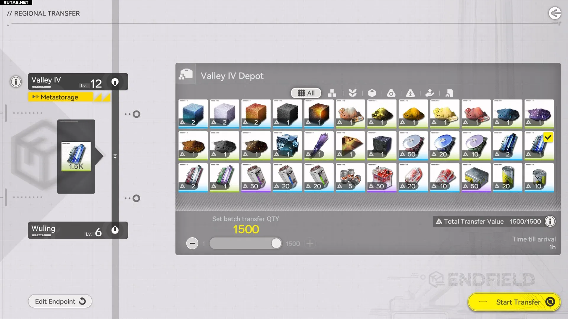 Например, достигнув 12-го уровня развития в Долине IV, вы можете использовать Мета-хранилище для отправки ресурсов в Улин.
