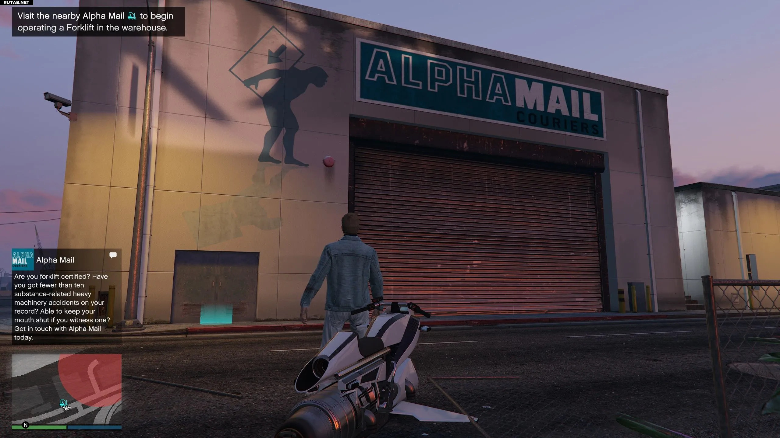 Чтобы стать оператором погрузчика, вам нужно посетить склад Alpha Mail на New Empire Way в LSIA. Добравшись до отмеченной на карте области, вы получите текстовое уведомление, а на карте появится синяя иконка работы «Оператор погрузчика». Подойдите к входной двери здания Alpha Mail, найдите синий круг и взаимодействуйте с ним, нажав «Вправо» на крестовине (D-Pad).