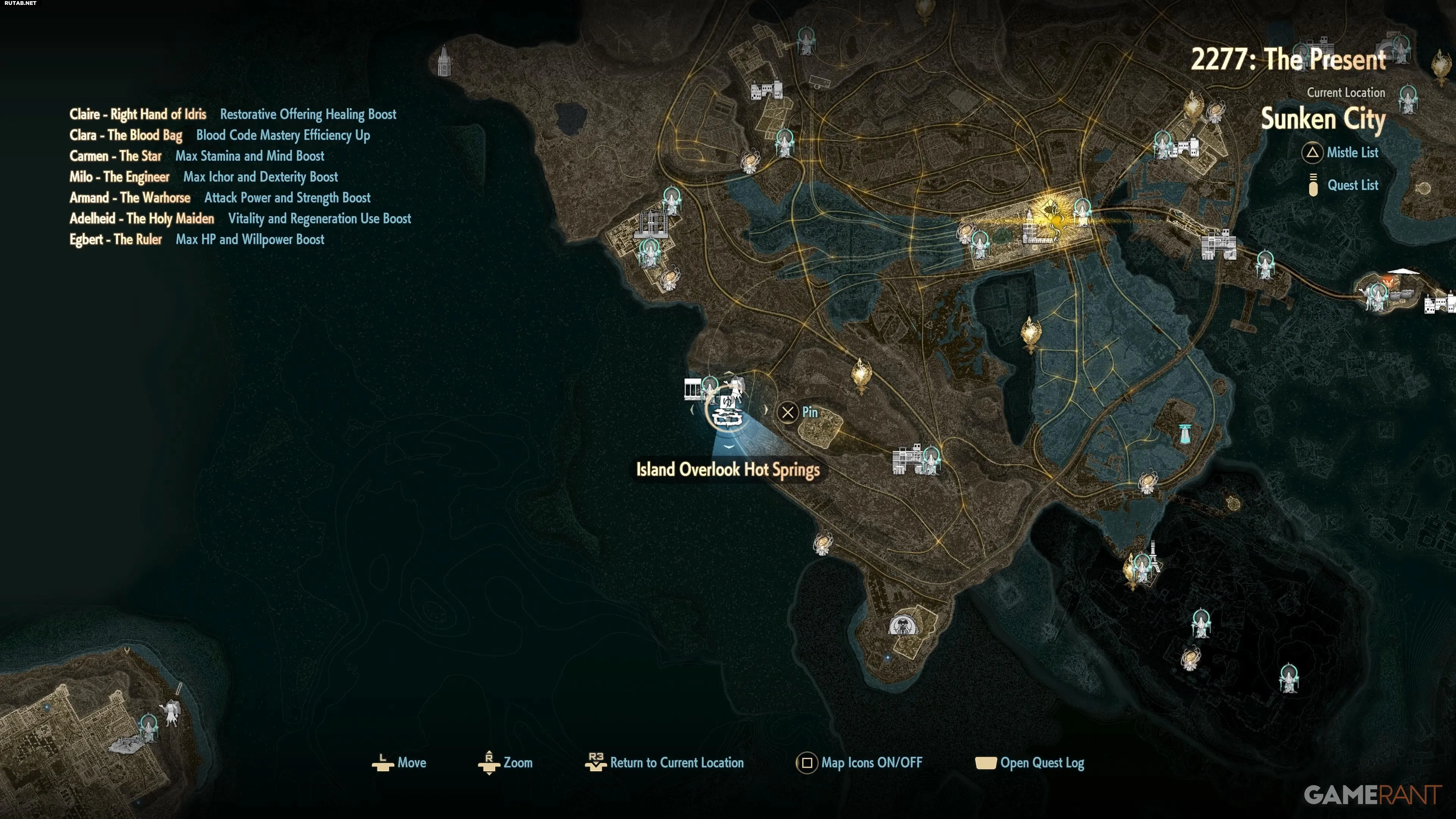 Этот источник также является частью сюжета, но для достижения его нужно посетить повторно. Используйте быстрое перемещение к Мистлу «Пещерные горячие источники» внутри Пещеры ущелья. Спуститесь вниз и спрыгните, чтобы найти последний источник.