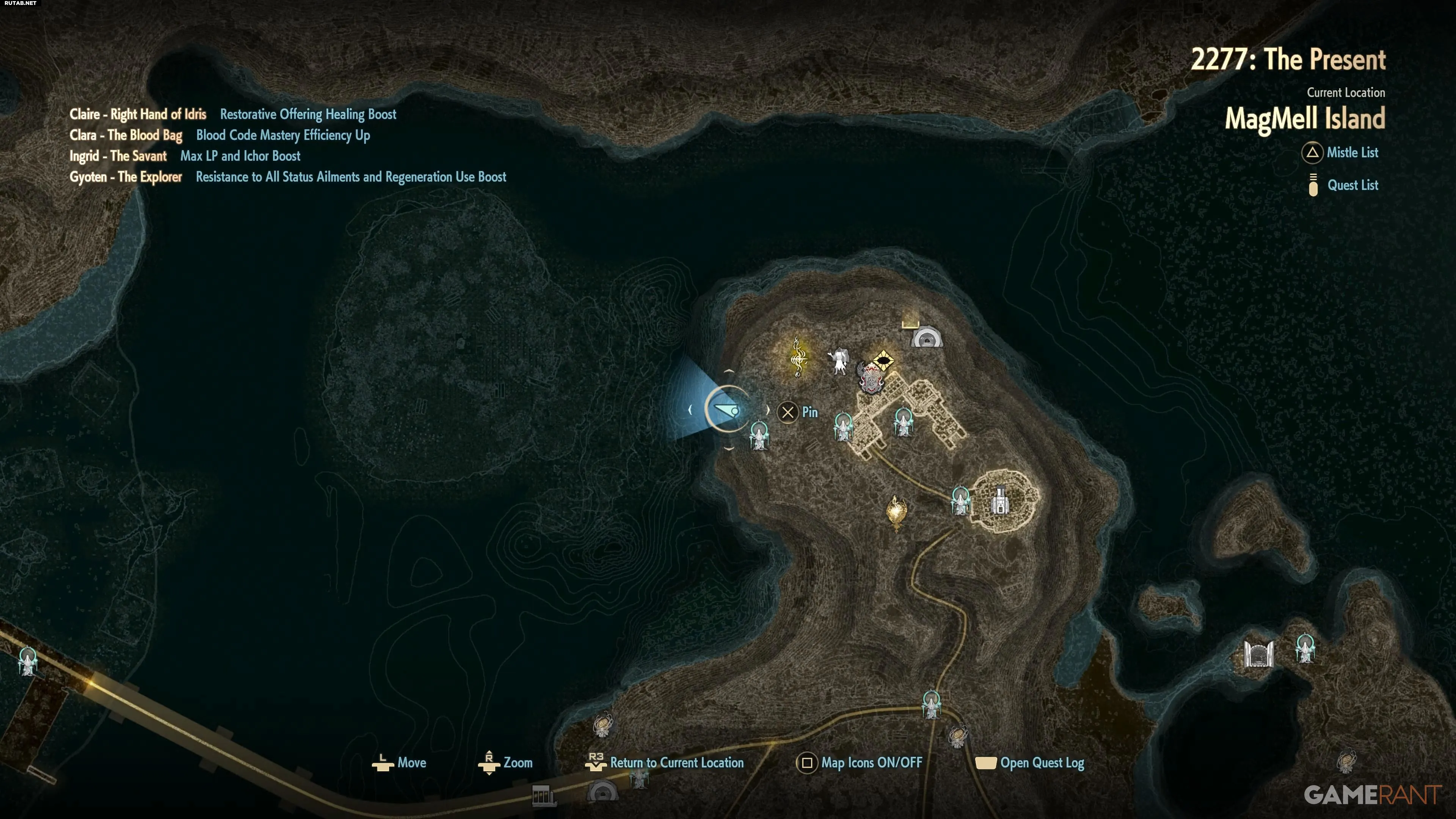 Направляйтесь на юго-запад Затонувшего города, чтобы найти Мистл «Пирс западного побережья». К югу от этого Мистла находится источник. Рядом на вершине холма можно также найти одного из приспешников Ядвиги.