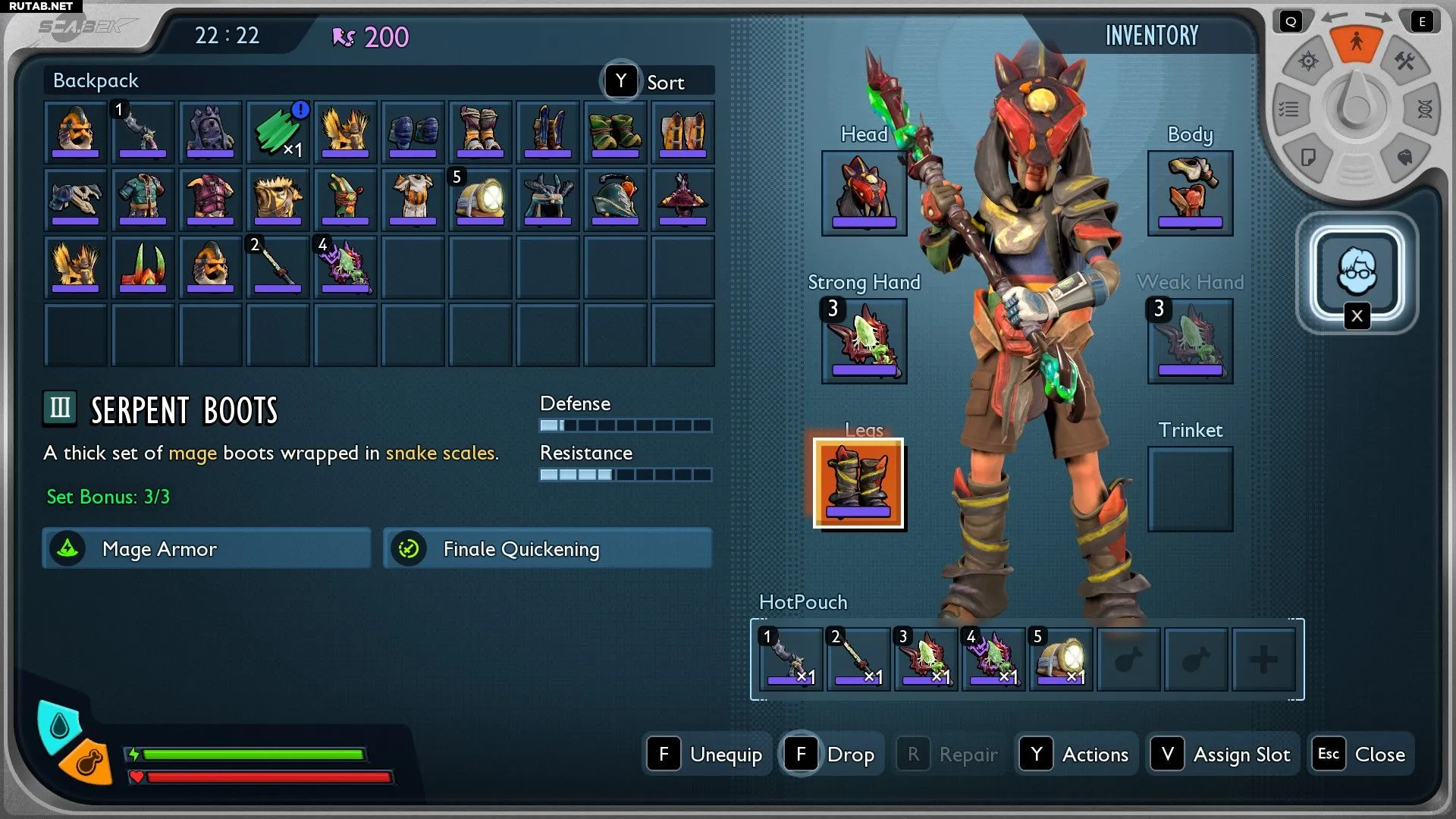 Проанализировав эту чешую, вы откроете рецепт комплекта. Эта броня относится к магическому классу и обладает бонусом «Ускорение финала», который увеличивает скорость последней атаки в комбо, выполненной посохом. Это позволяет очень быстро выпускать целые серии заклинаний.