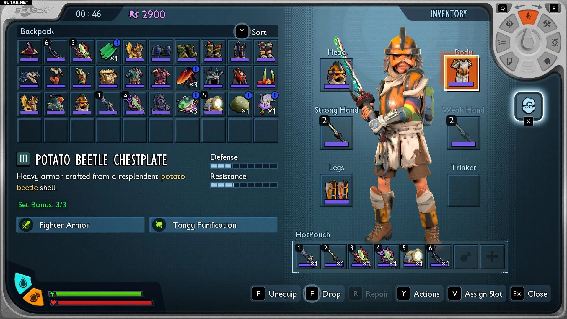 Комплект «Колорадский жук» — отличный способ противостоять эффекту «Накопление Танга» благодаря своему бонусу «Очищение Тангой». Этот бонус с определённым шансом снижает эффект коррозии каждый раз, когда игрок успешно блокирует удар.