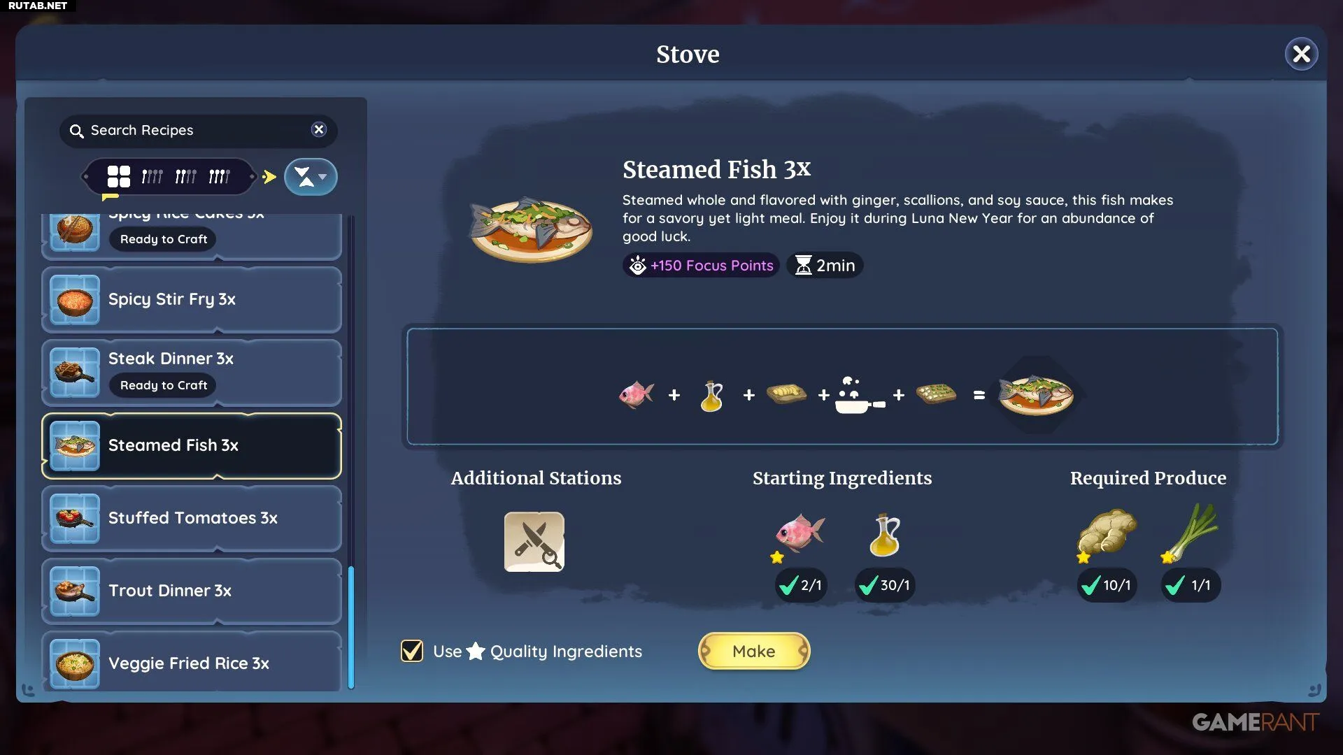 Эту рыбу также можно дарить в качестве подарка различным жителям, таким как Эйнар, Рет, Тау и Зеки, чтобы повысить уровень дружбы. Хотя леща можно использовать в различных блюдах, он является основным ингредиентом рецепта «Рыба на пару». Этот рецепт можно купить за 1000 золотых в таверне «Рог Орму» в деревне Килима.
