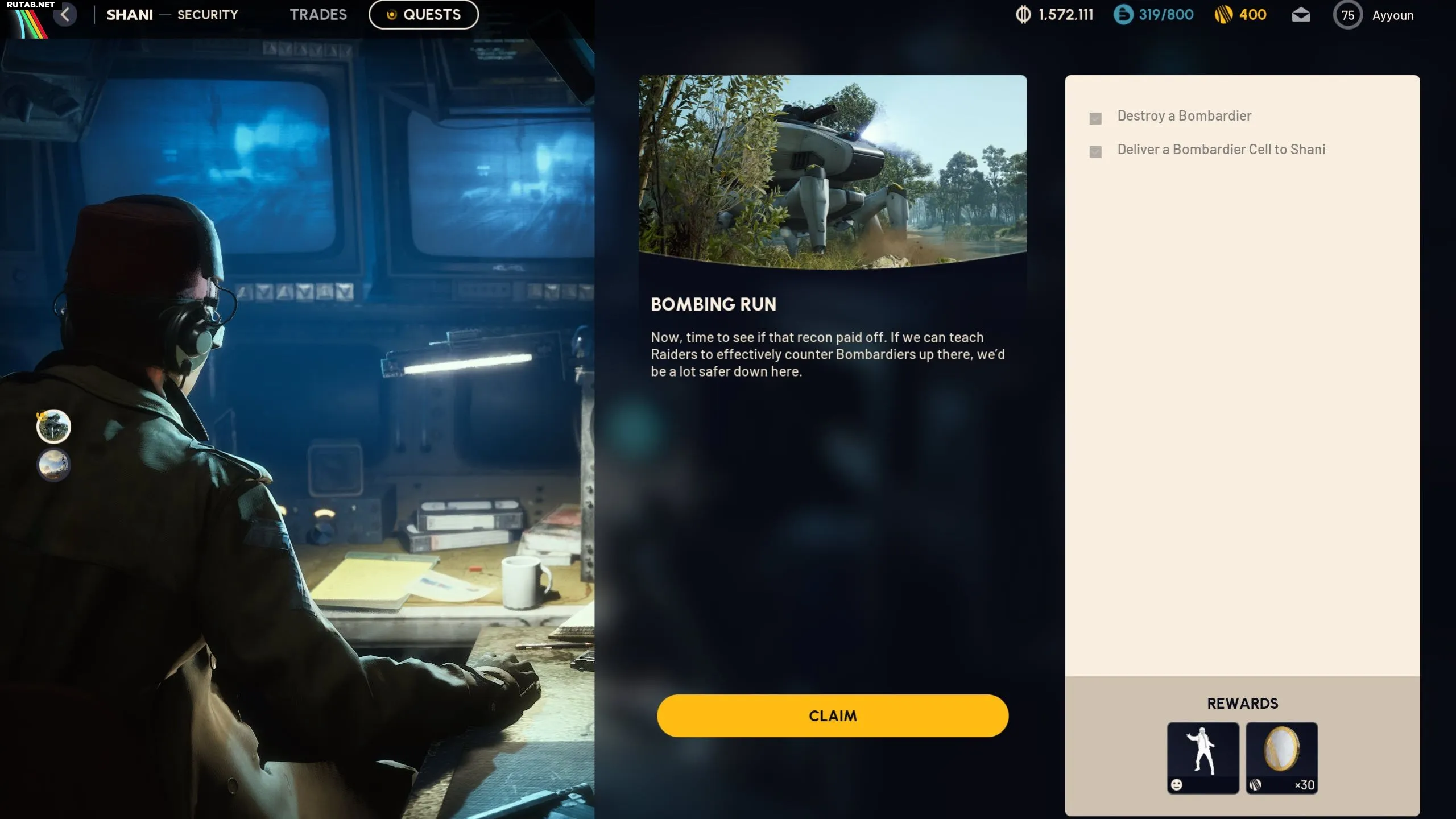 После выполнения всех целей игроки получат эмоцию «Пальцем-пистолет» (одиночный выстрел) и 30 жетонов рейдера в качестве награды за завершение задания «Бомбёжка».
