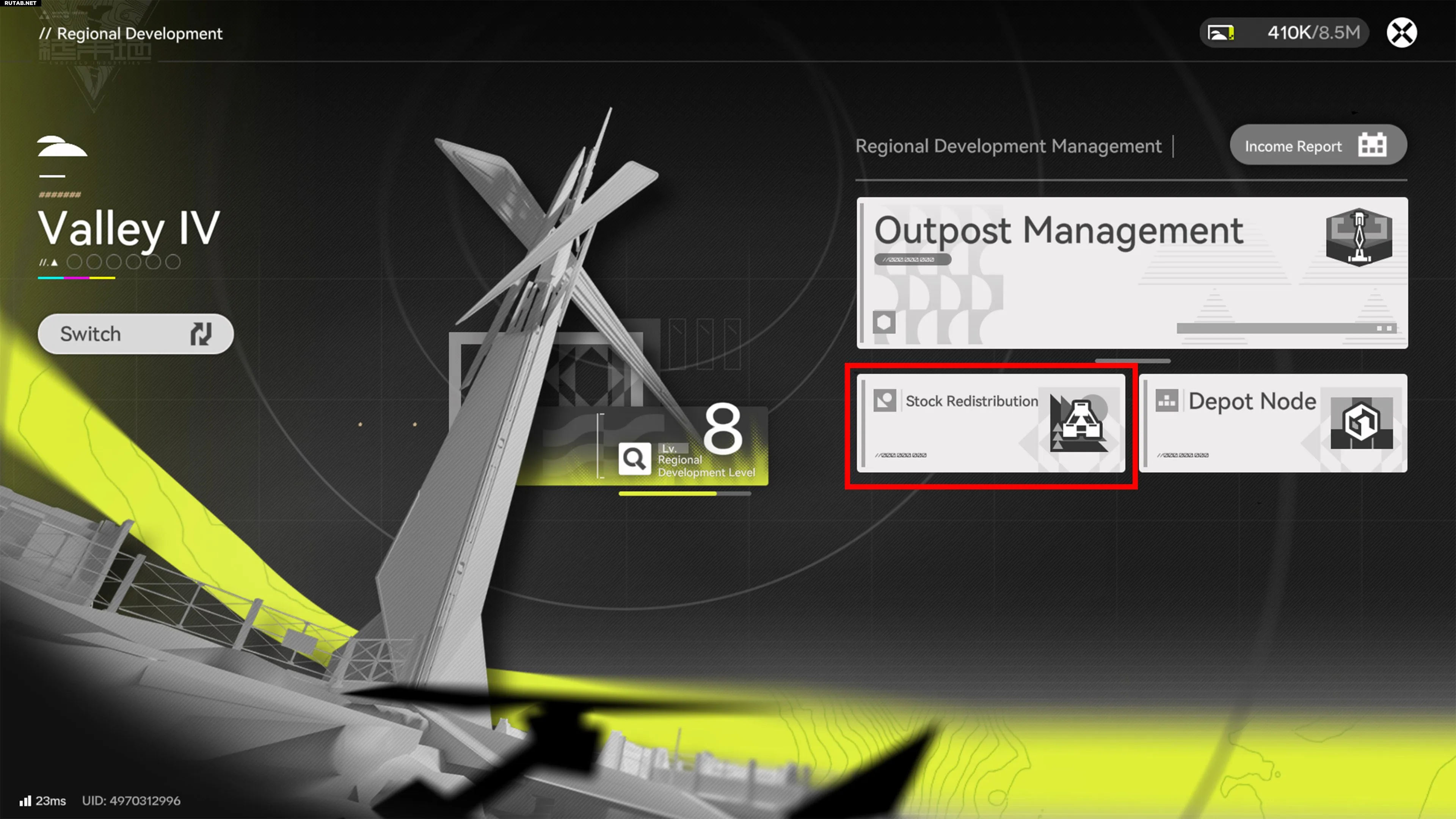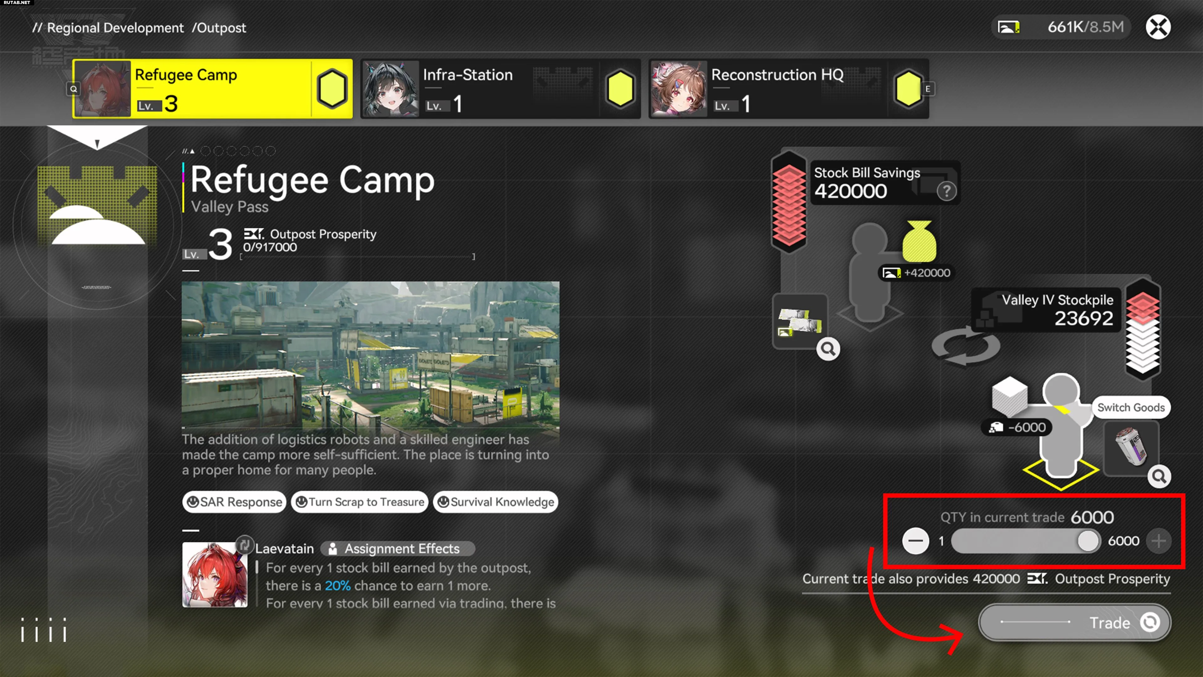 В том же меню «Региональное развитие» игроки могут открыть раздел «Перераспределение запасов». Здесь Эндмины могут ежедневно покупать лимитированные Эластичные товары, а затем перепродавать их, получая дополнительные Складские ордеры.