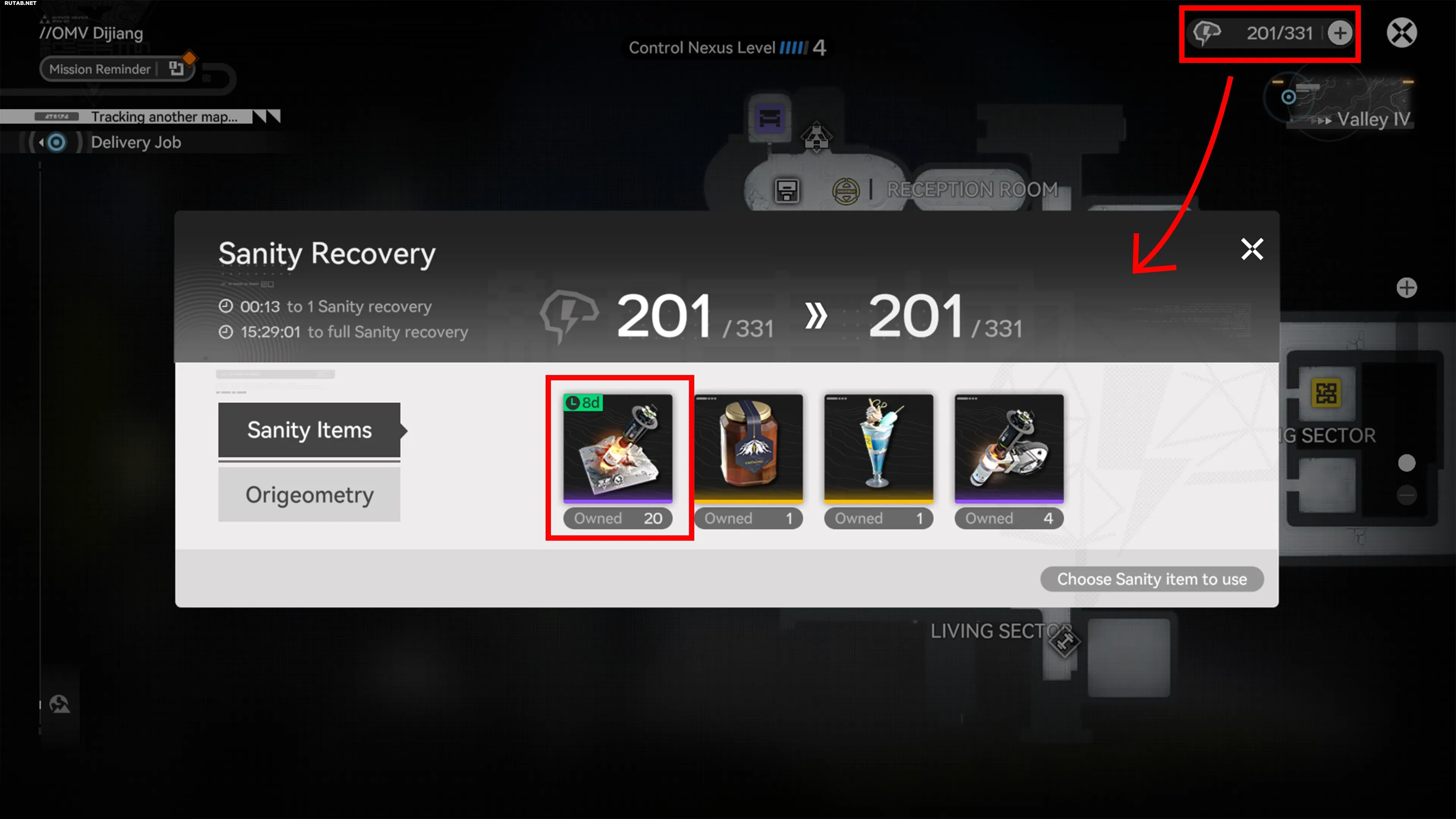 Также не забывайте использовать Стимуляторы экстренного восстановления Разума, так как они со временем исчезают. Применить их можно, нажав на значок плюса у шкалы Разума.