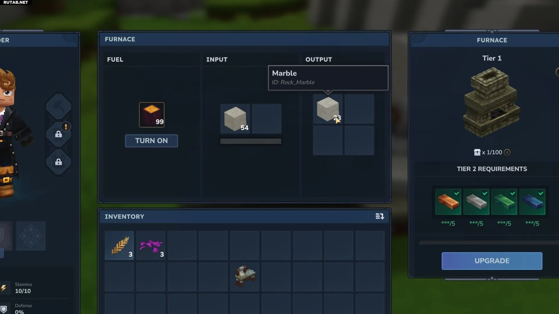 Поместите Булыжник Мрамора в печь в раздел для сырья и включите её, добавив топливо. Из каждых 2 единиц булыжника вы получите 1 блок мрамора.