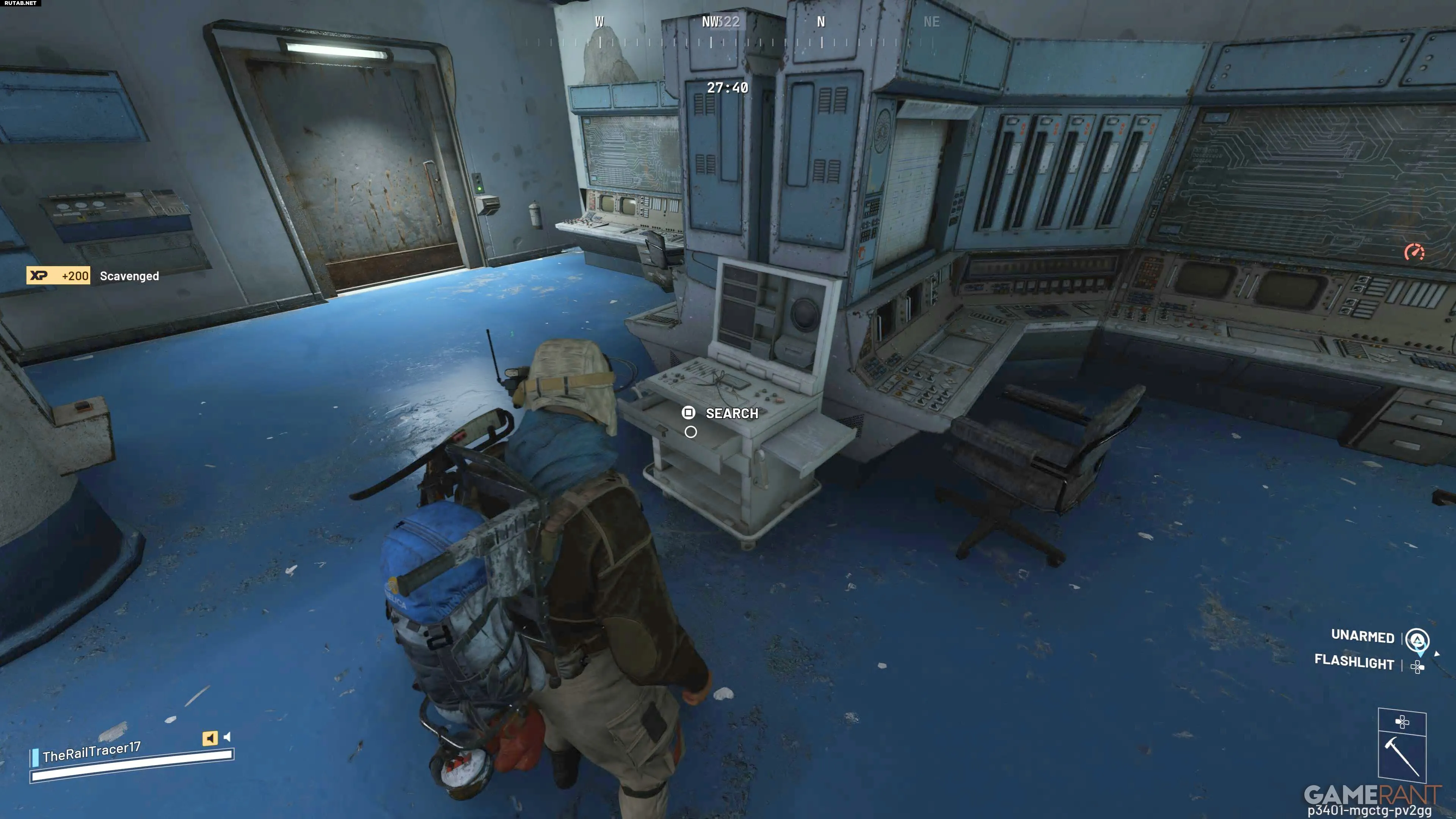 Оказавшись в нужном месте, обыщите все инструментальные ящики (желтые или белые) в округе. В них самый высокий шанс найти счетчики Гейгера и другую редкую добычу. Несколько ящиков есть на первом этаже, затем поднимитесь по лестнице рядом с люком и зайдите в комнату.