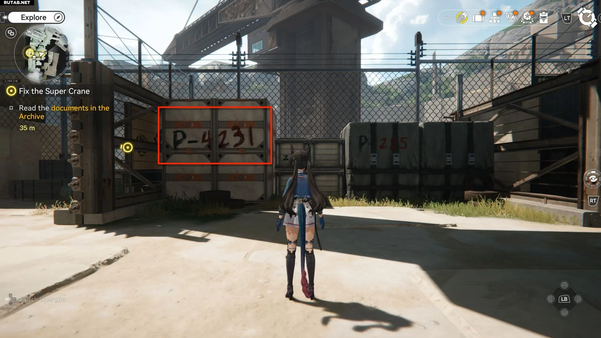 Чтобы двигаться дальше, найдите правильную последовательность активации устройств. Правильный ответ — 4231. Его можно узнать из записки или найти на грузе маркировку P-4231. Альтернатива — взорвать все четыре устройства гранатой. Заберите компонент и возвращайтесь в Центр управления кранами.