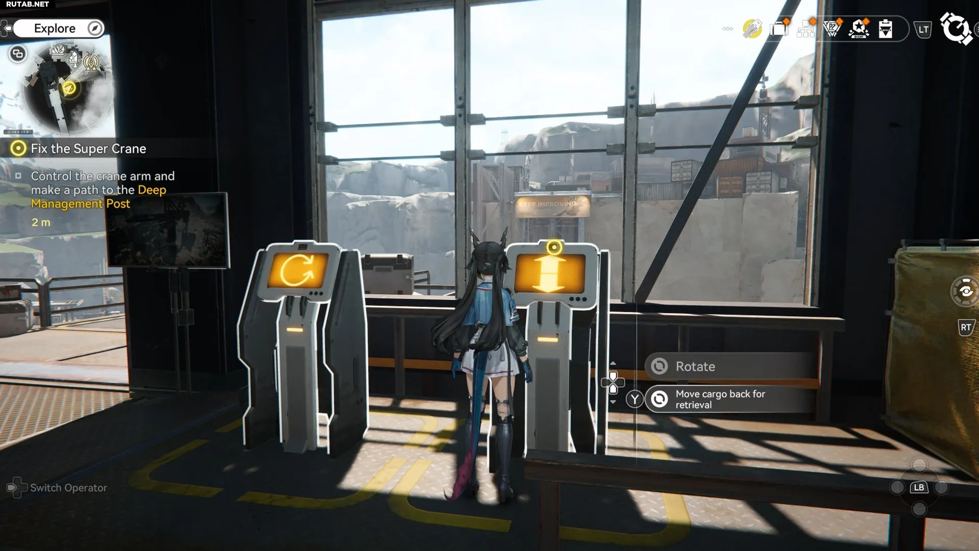 Вернитесь в Центр управления. Управляя стрелой крана, создайте путь к Посту: сдвиньте её один раз и поверните дважды. Поднимитесь по верёвке, чтобы догнать команду UWST SAR.