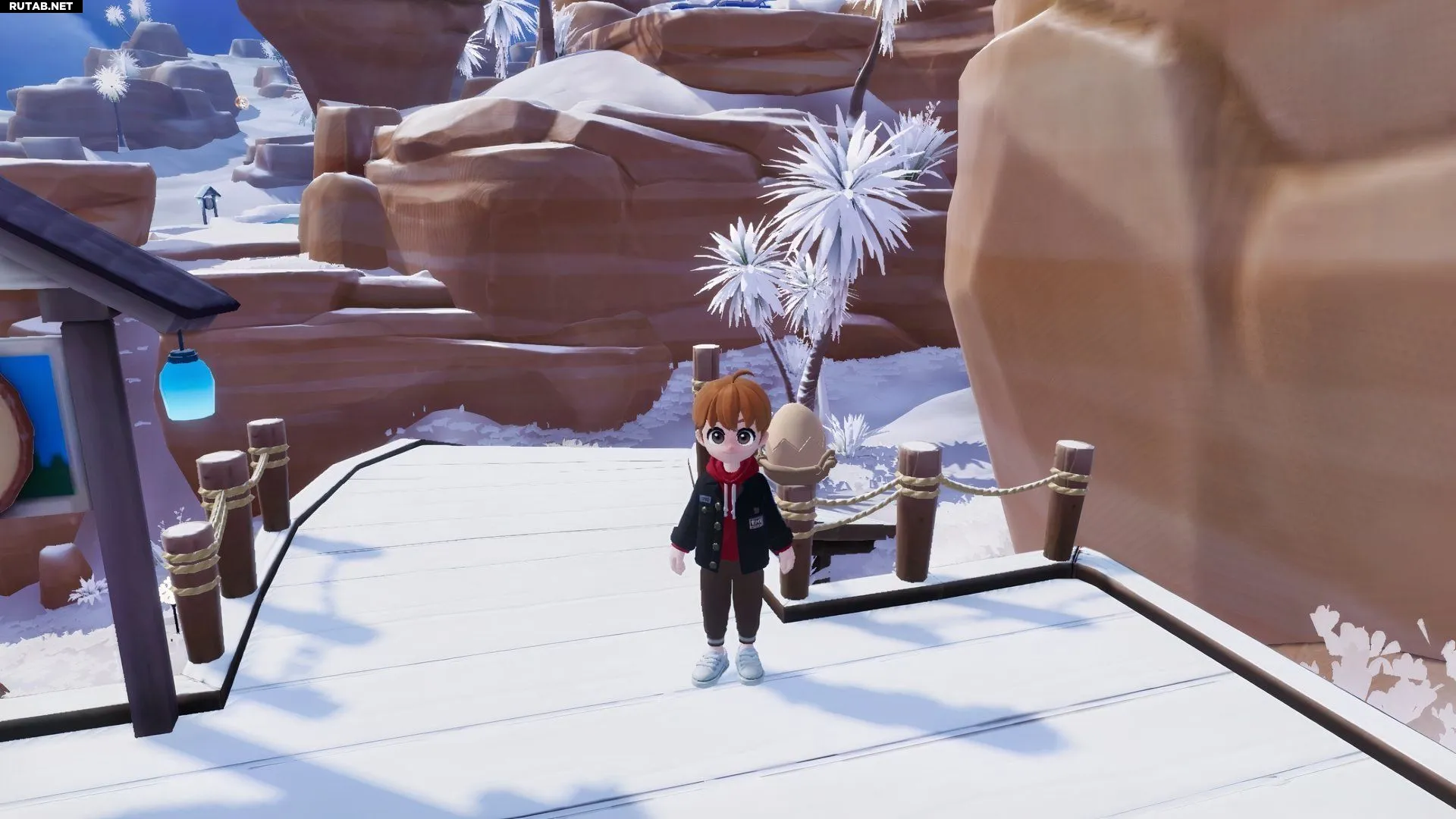 | 1-й (Бежевое треснувшее яйцо) | На столбе забора прямо за NPC Норти. | На остановке «Зимняя Утопия», на каменном образовании. | |