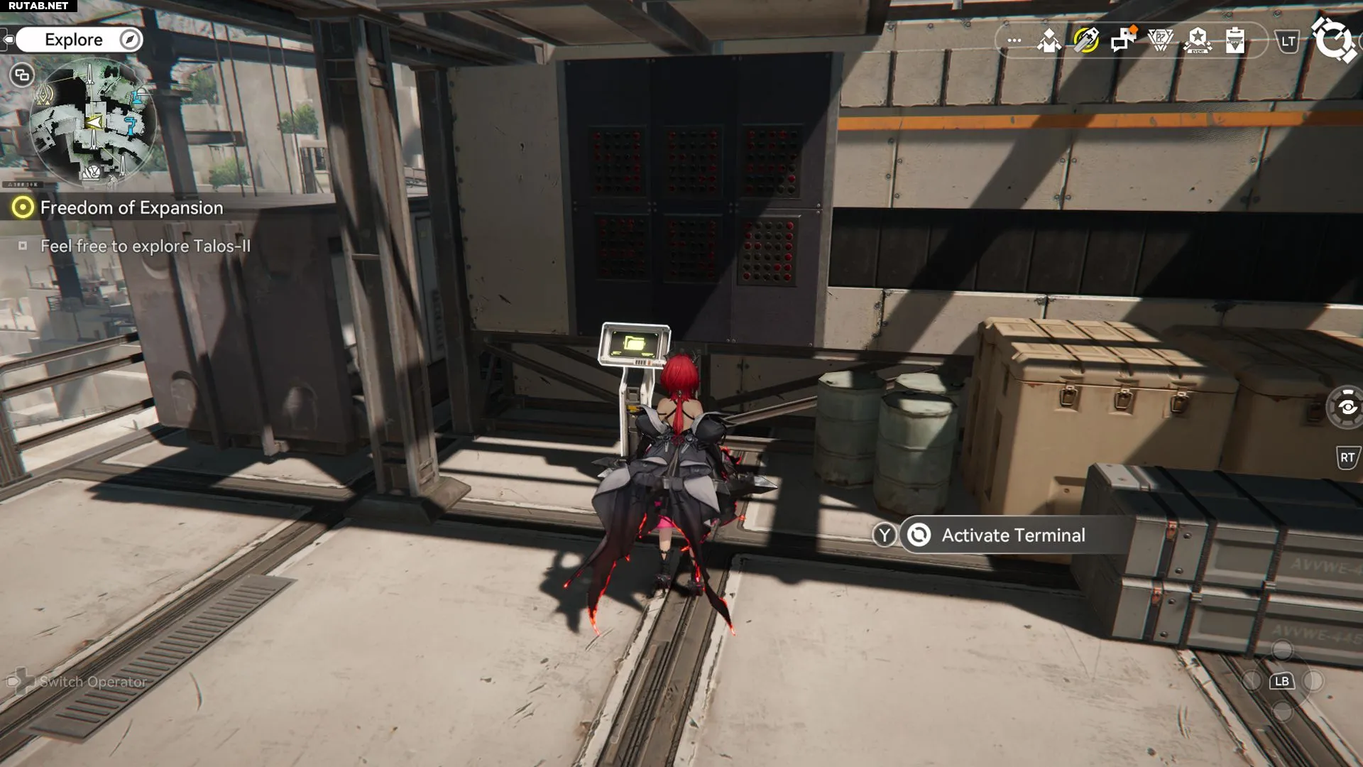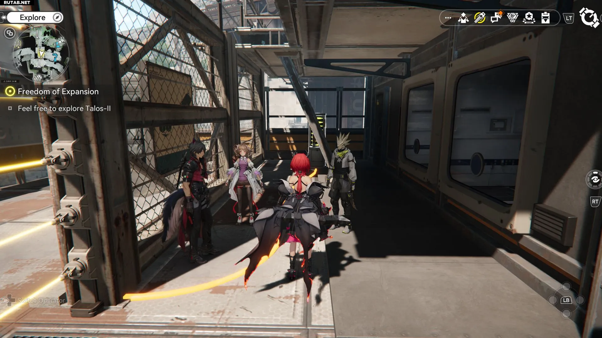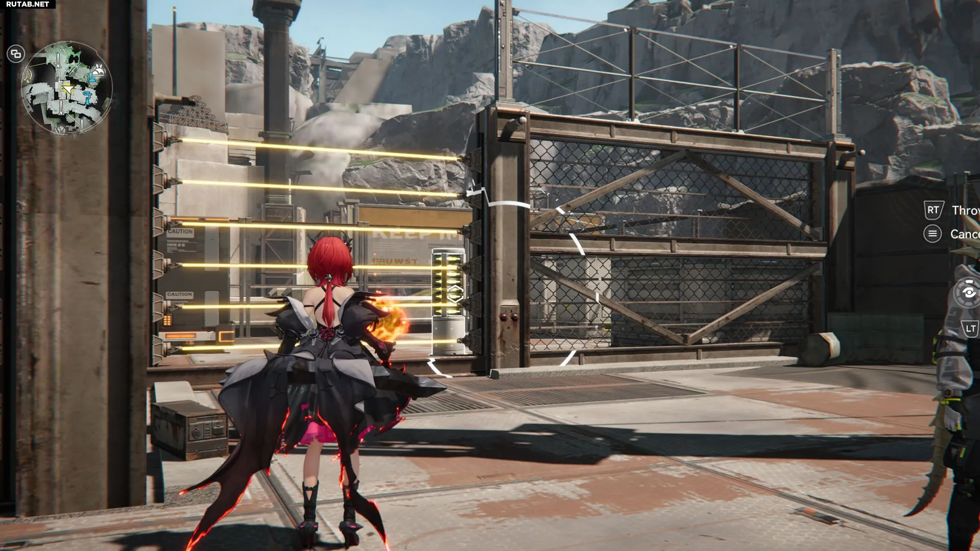 Первое, что нужно сделать, — деактивировать высоковольтное ограждение. Для этого найдите и активируйте механизм внизу. Следуйте по оранжевому кабелю, чтобы отыскать нужный механизм.