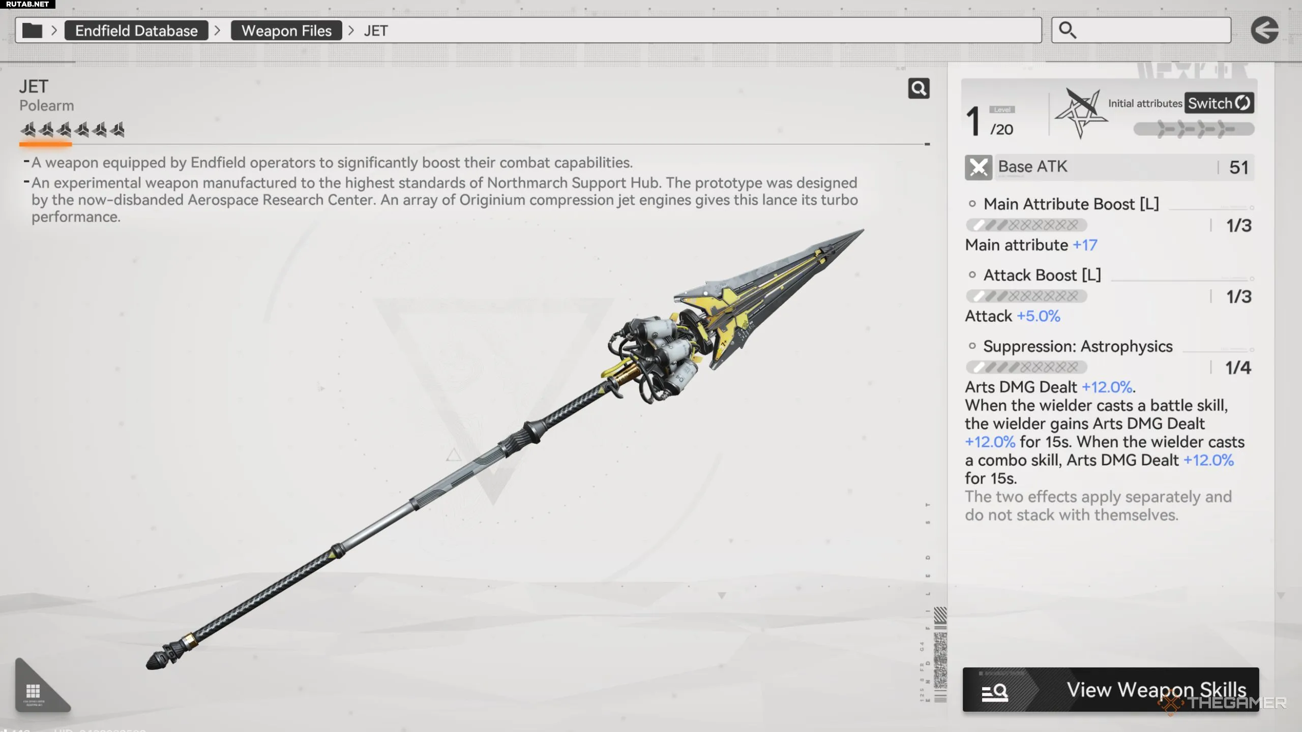 | JET | 6 звёзд | Это феноменальное оружие, которое может давать своему владельцу огромный бонус к урону искусств при использовании боевого или комбо-навыка. |