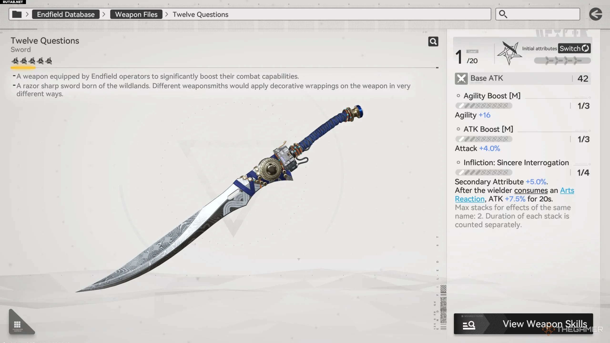 | Двенадцать Вопросов | 5 звёзд | Способности персонажей часто расходуют Артс-реакцию. Это оружие даёт им дополнительную атаку при этом. |
