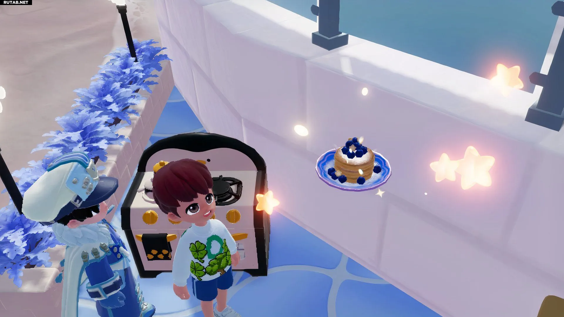 Когда рецепт у вас (он также может прийти по почте), приготовление станет делом техники. Используйте Пингвинью печку и выберите в списке рецептов Глазированные блинчики. Если у вас своей печки ещё нет, можно воспользоваться той, что стоит на кухне у Массимо в локации «Горное озеро с онсэном».