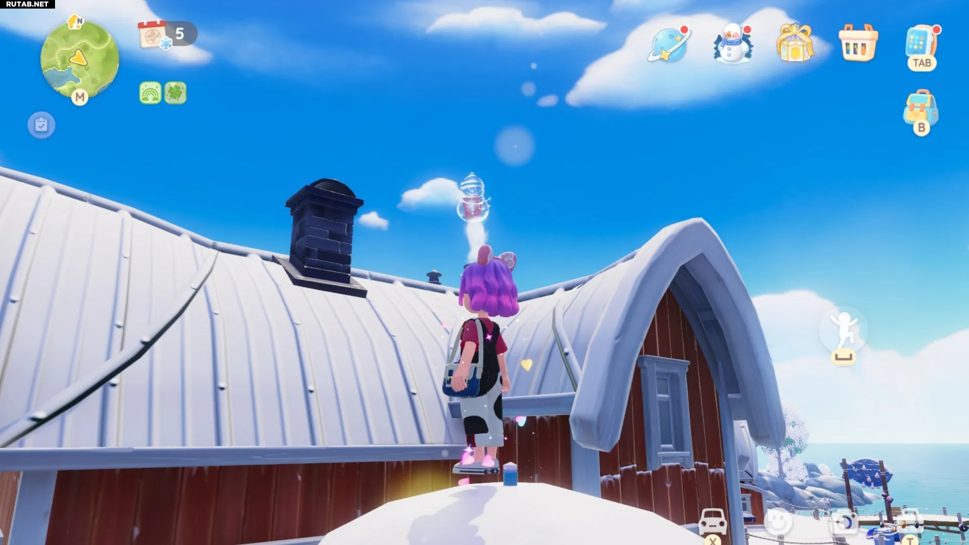 Самый простой способ добраться до него — запрыгнуть на зонтик рядом с домом, а оттуда уже на саму крышу. Будьте осторожны: можно застрять на скате. Если это произошло, просто подпрыгните ещё раз, чтобы оказаться достаточно высоко и схватить пузырь.