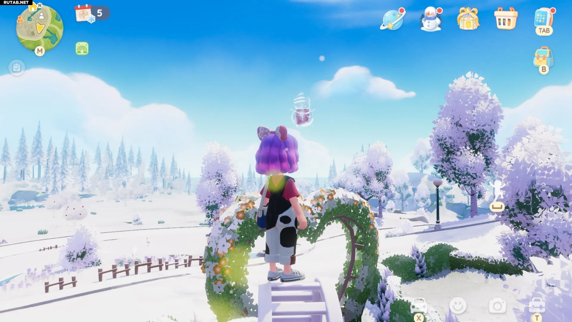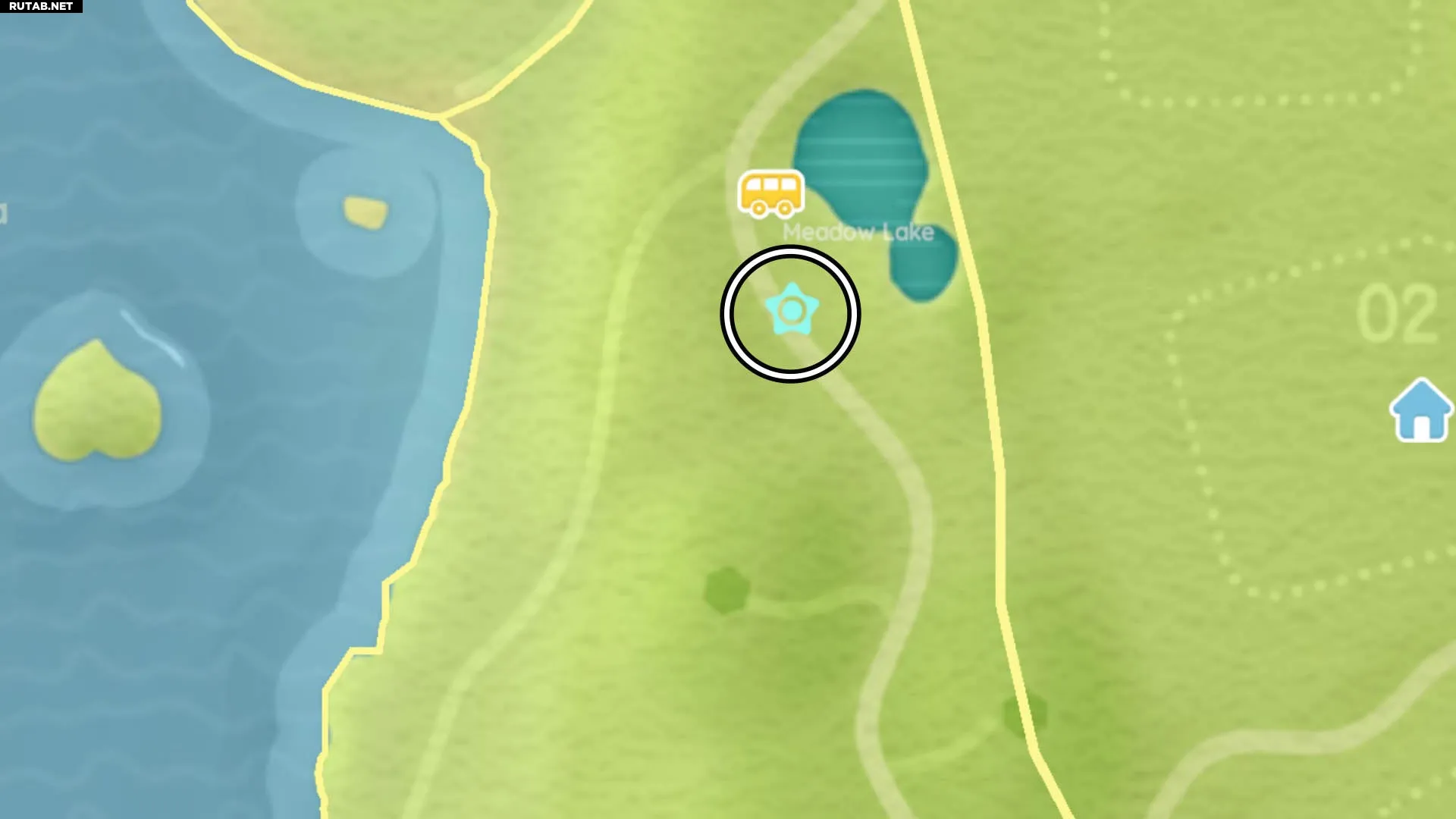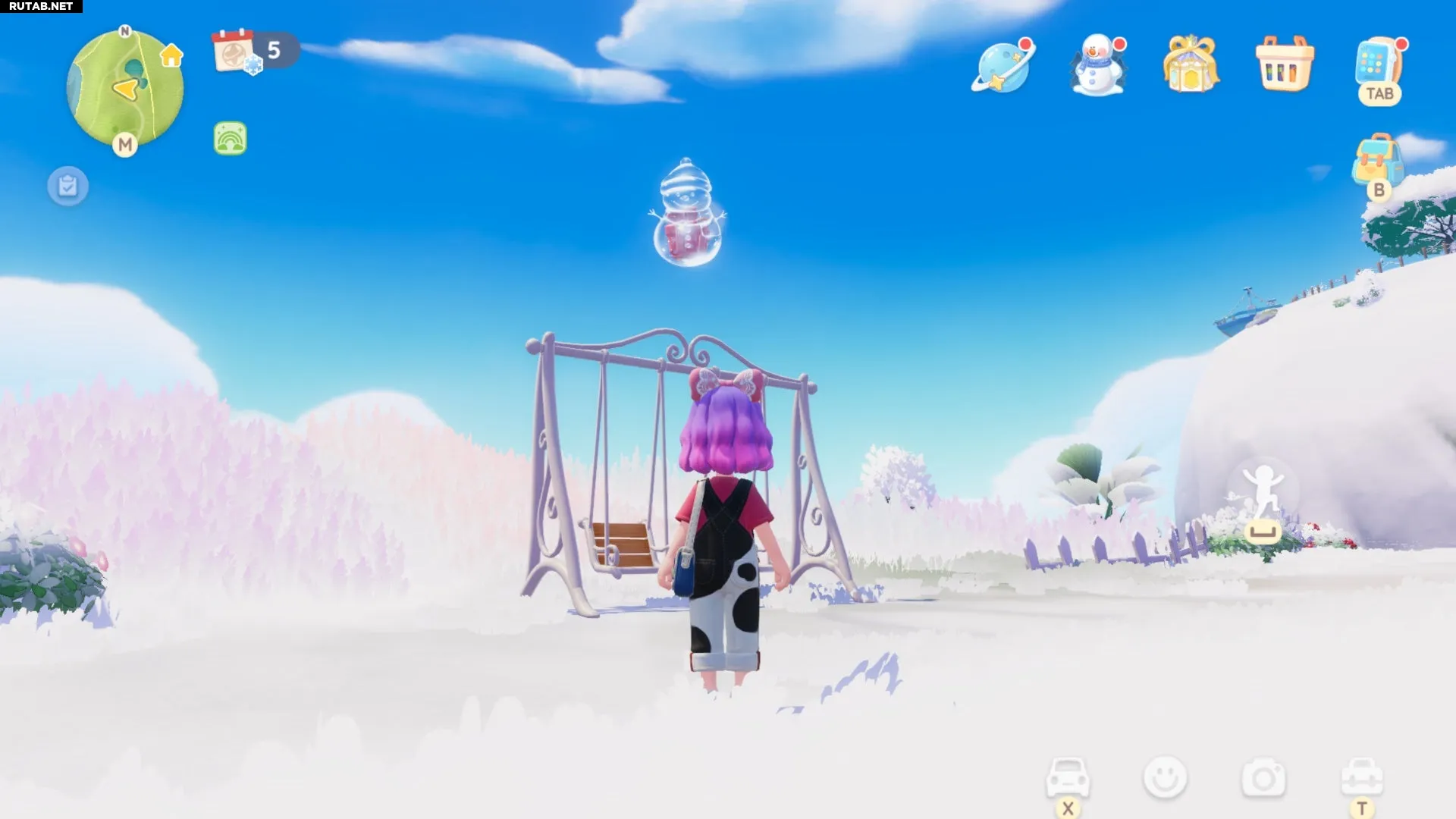 Этот Снеговик-пузырь можно найти на вершине качелей у Лугового озера на Цветочных полях. Мы отметили это место на карте ниже: