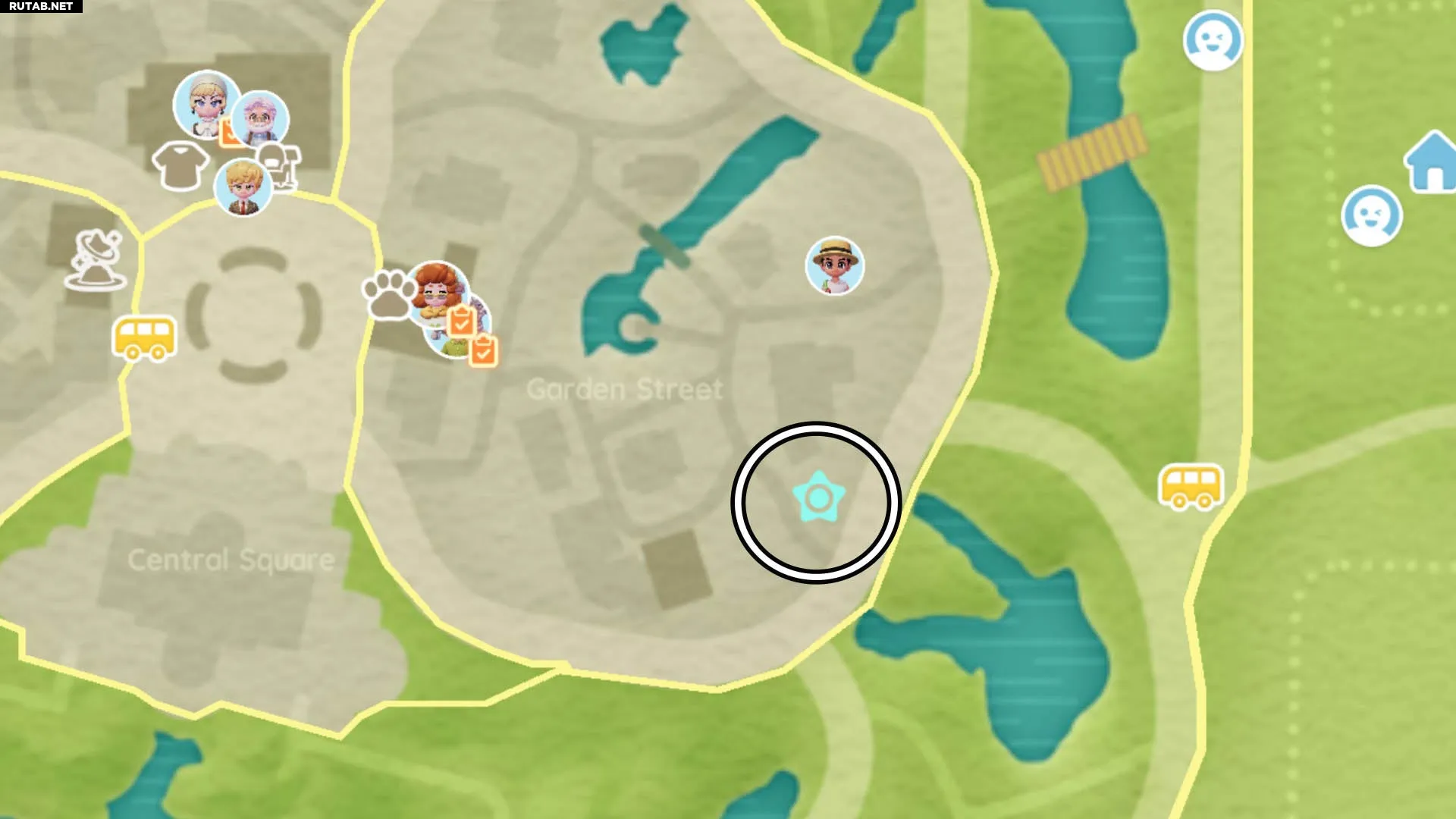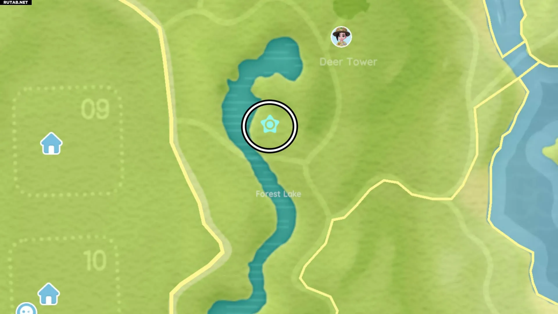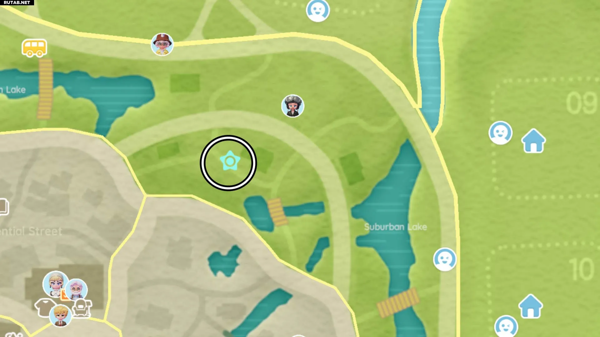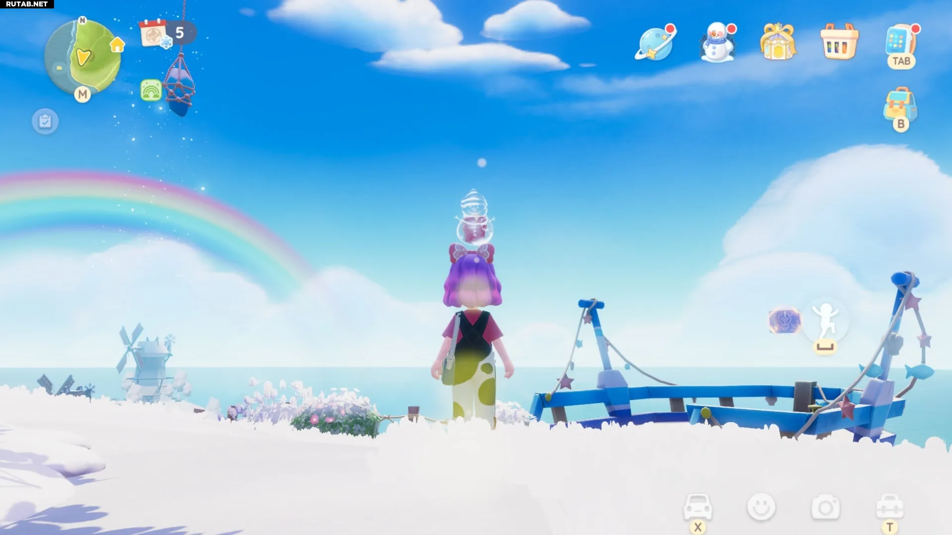 Этот Снеговик-пузырь можно найти на вершине качелей у Лугового озера на Цветочных полях. Мы отметили это место на карте ниже: